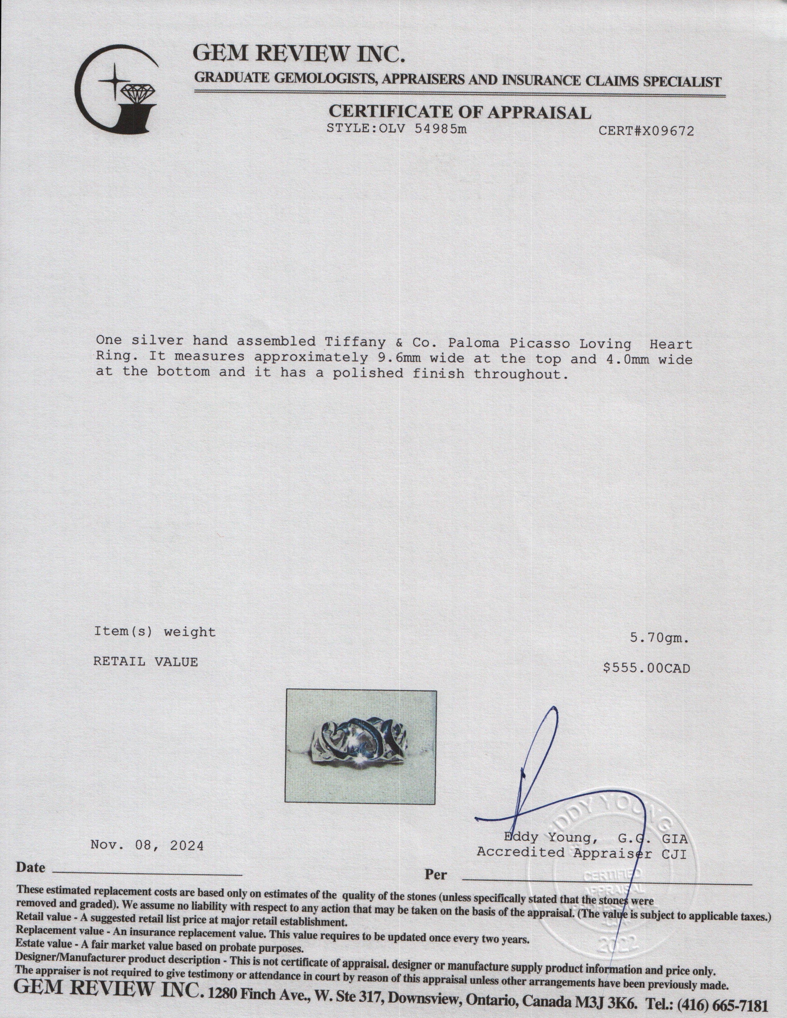 Paloma Picasso Sterling Silver Loving Heart Ring, Size 6.25