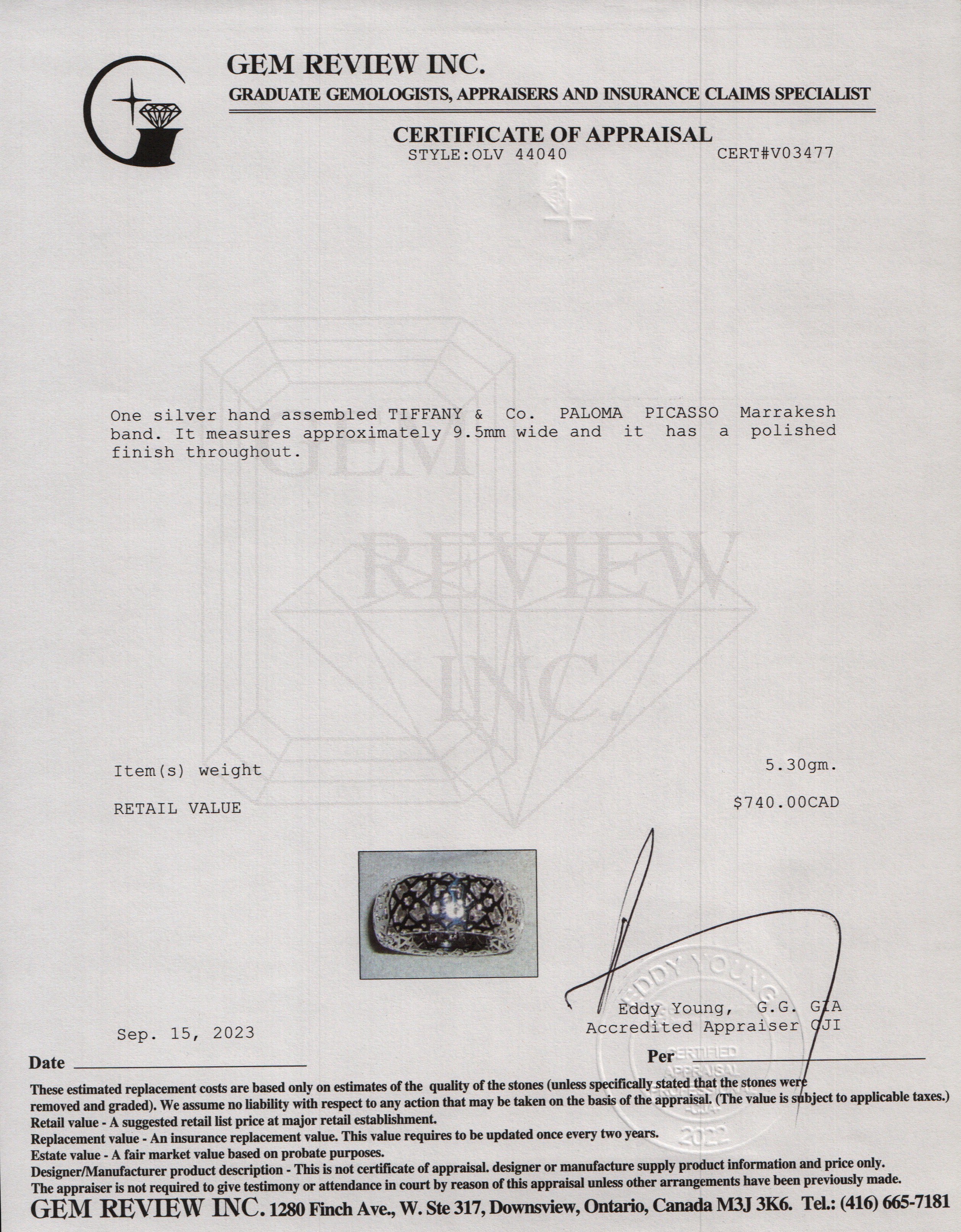 Paloma Picasso Sterling Silver Marrakesh Band Ring, Size 6.25