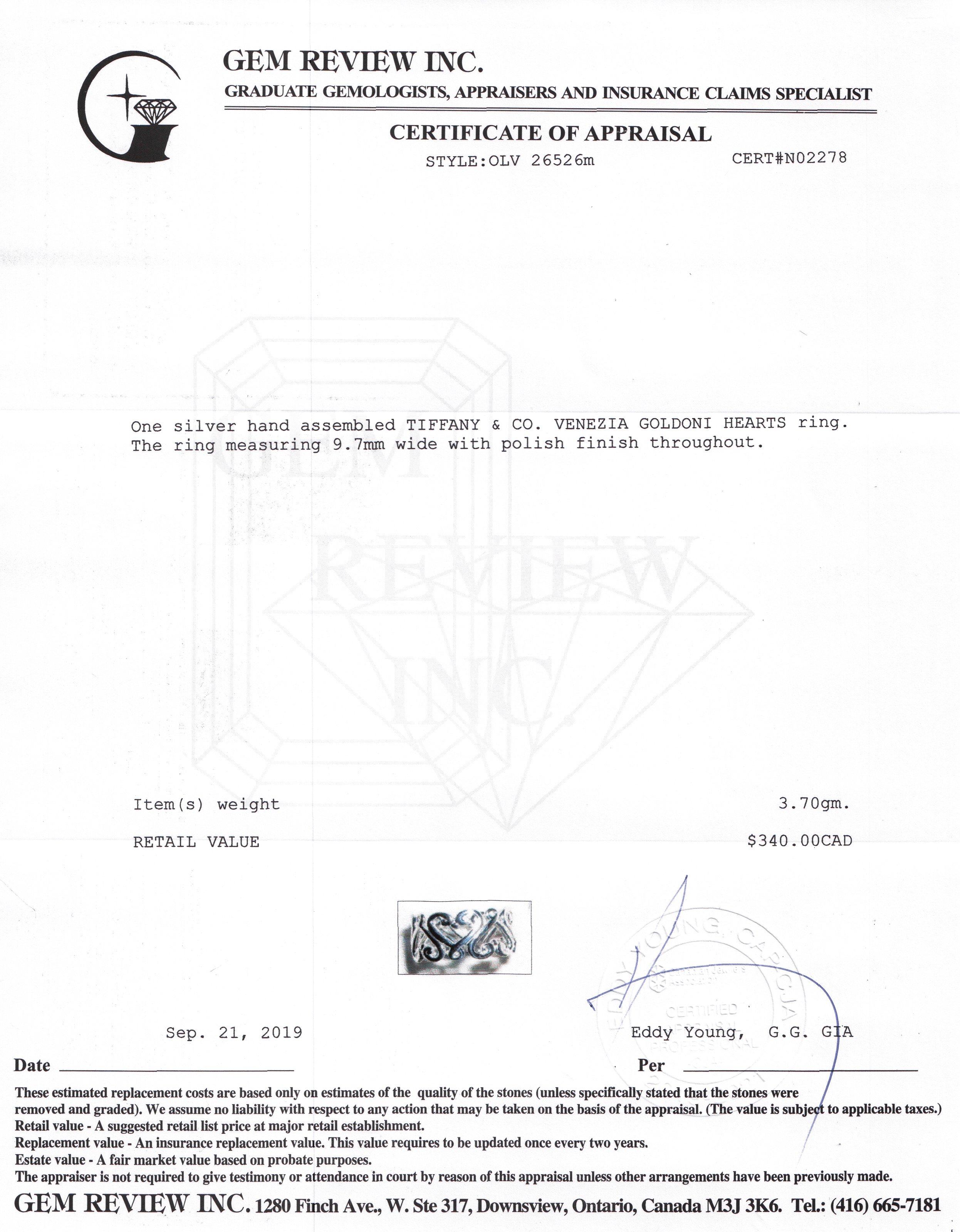 Tiffany & Co. Paloma Picasso Venezia Goldoni Heart Band Ring