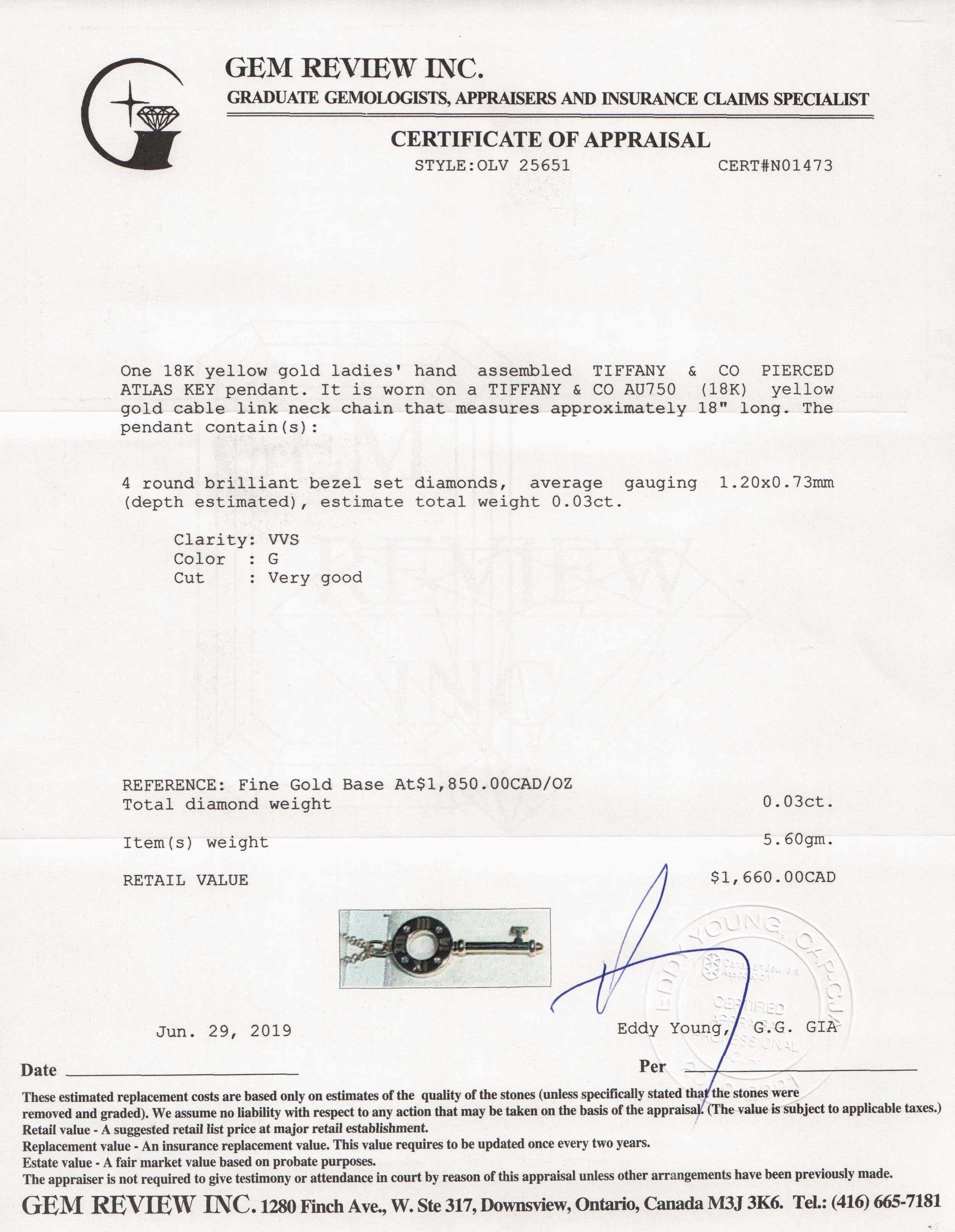 Tiffany & Co. Pierced Atlas Key Pendant Necklace with Diamonds