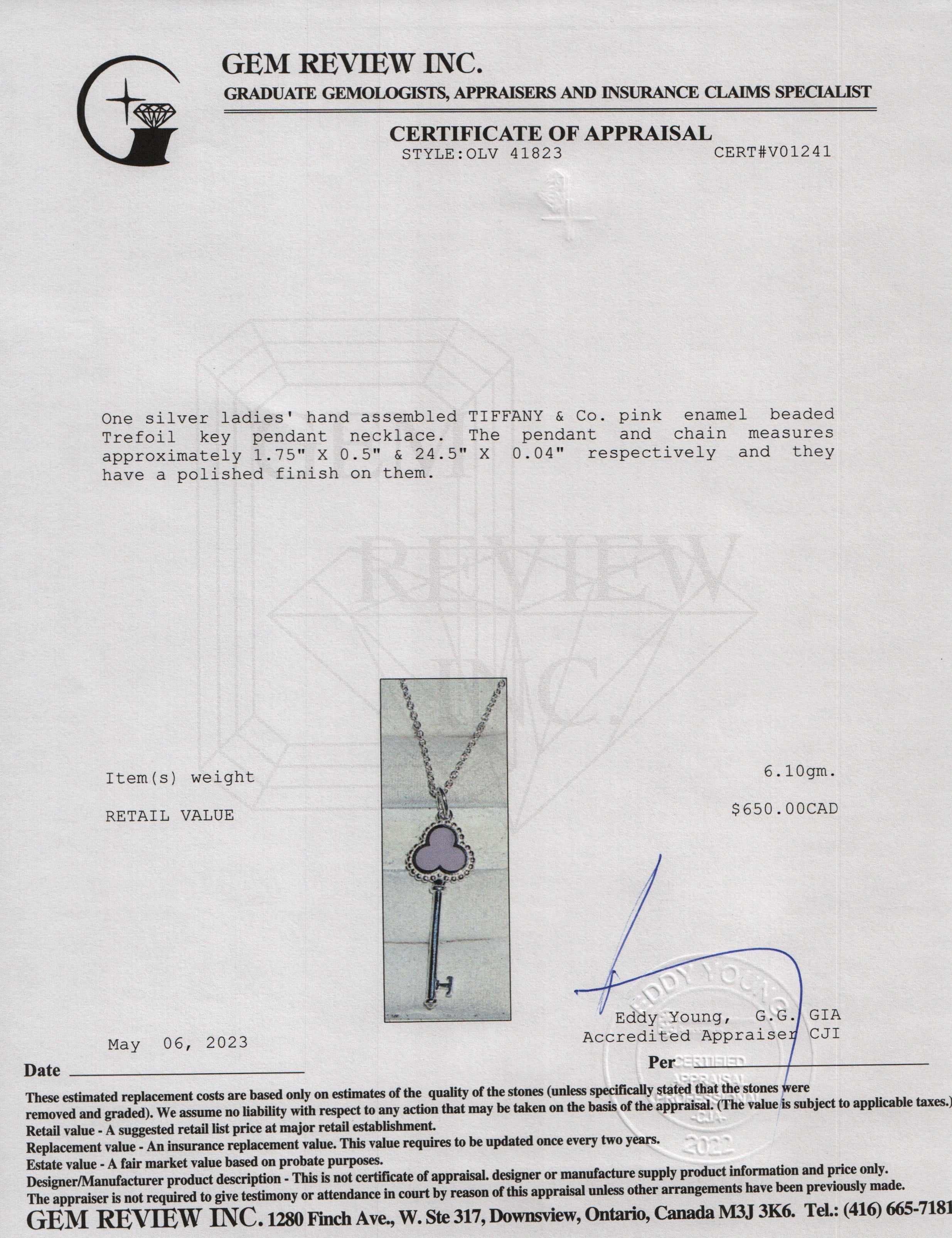 Tiffany & Co. Pink Enamel Beaded Trefoil Key Pendant Necklace
