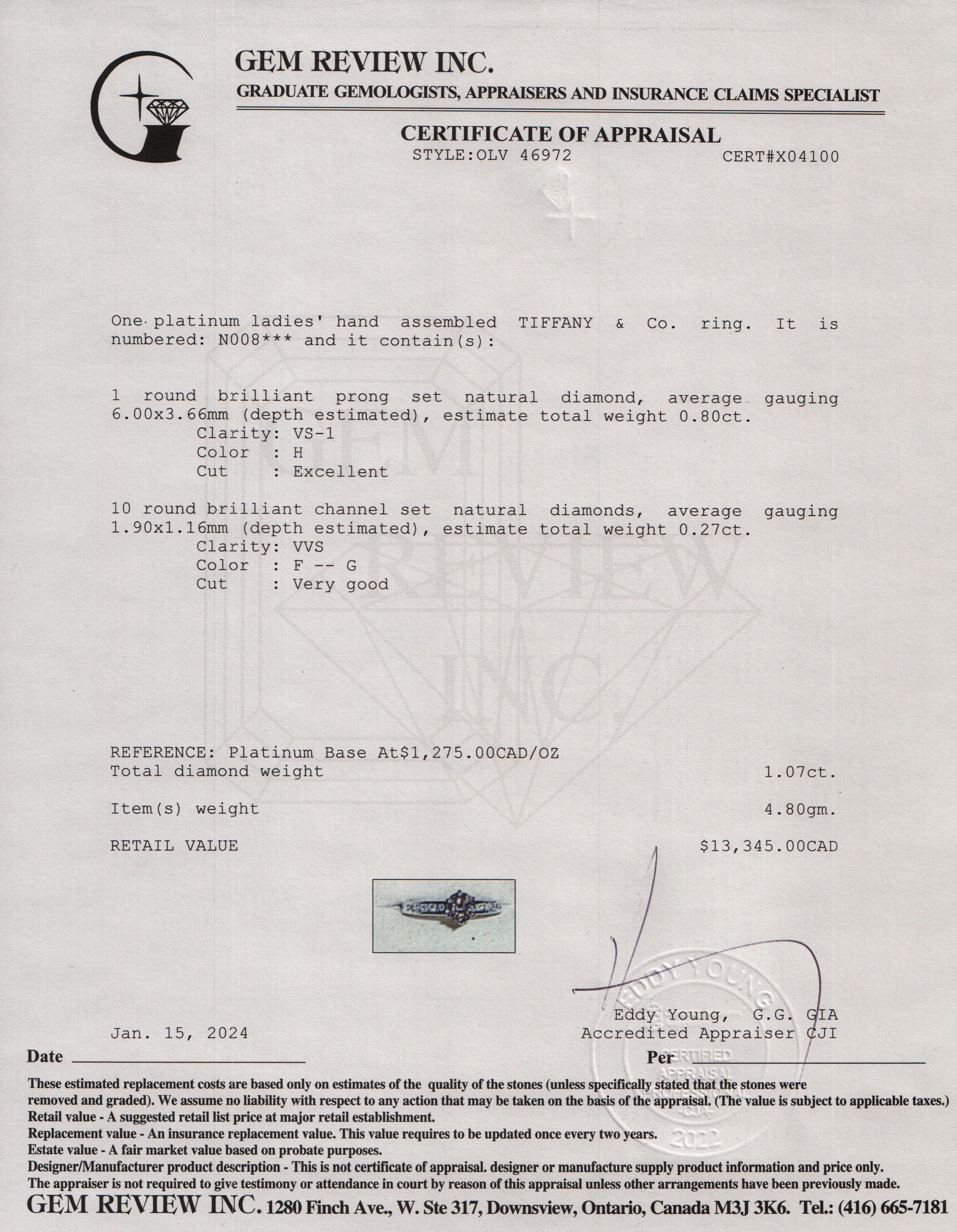 Platinum 0.80 ct. Round Brilliant Cut Diamond Engagement Ring, Size 8