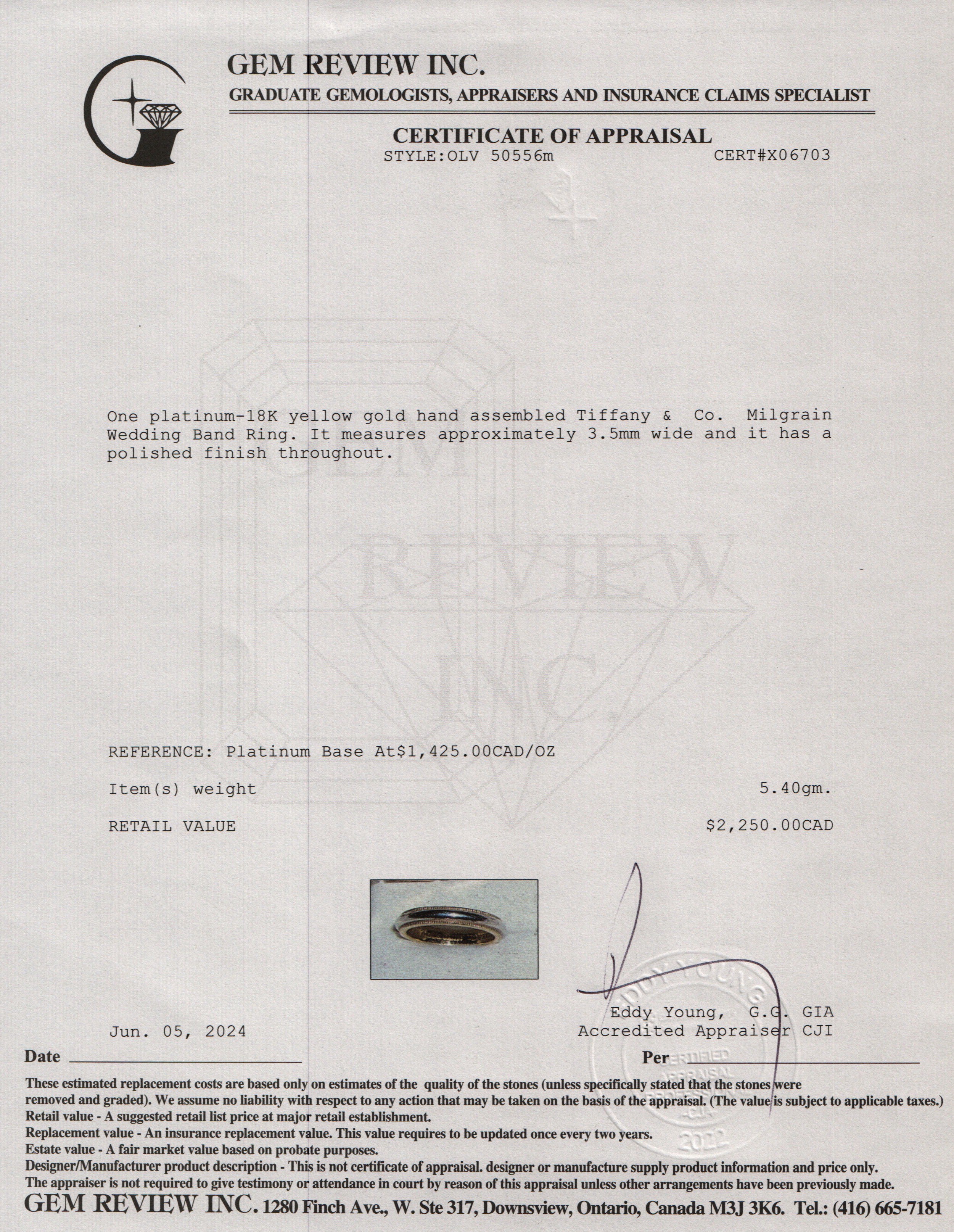 Platinum & 18k Yellow Gold 3.5MM Milgrain Wedding Band Ring, Size 6