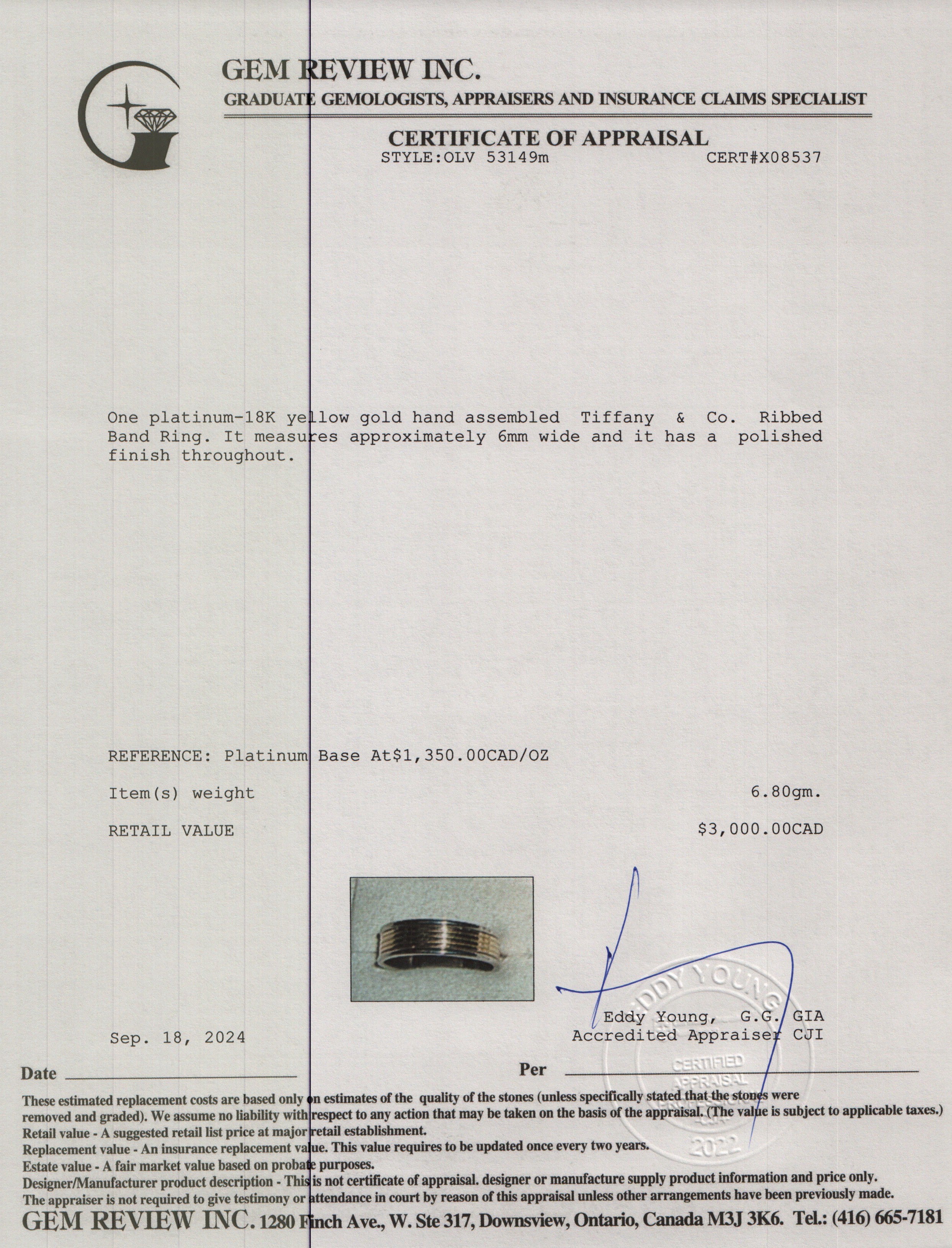 Platinum & 18k Yellow Gold Ribbed Band Ring, Size 6.75