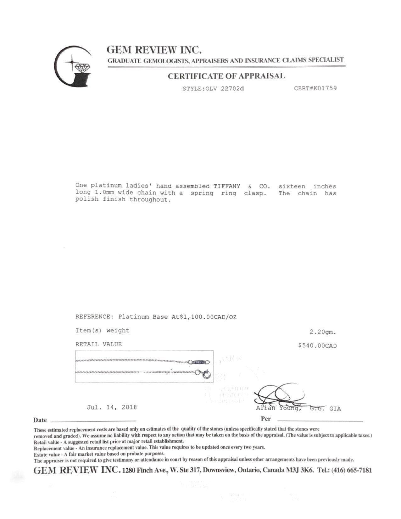• Signature/Hallmarks: Tiffany & Co. Pt950