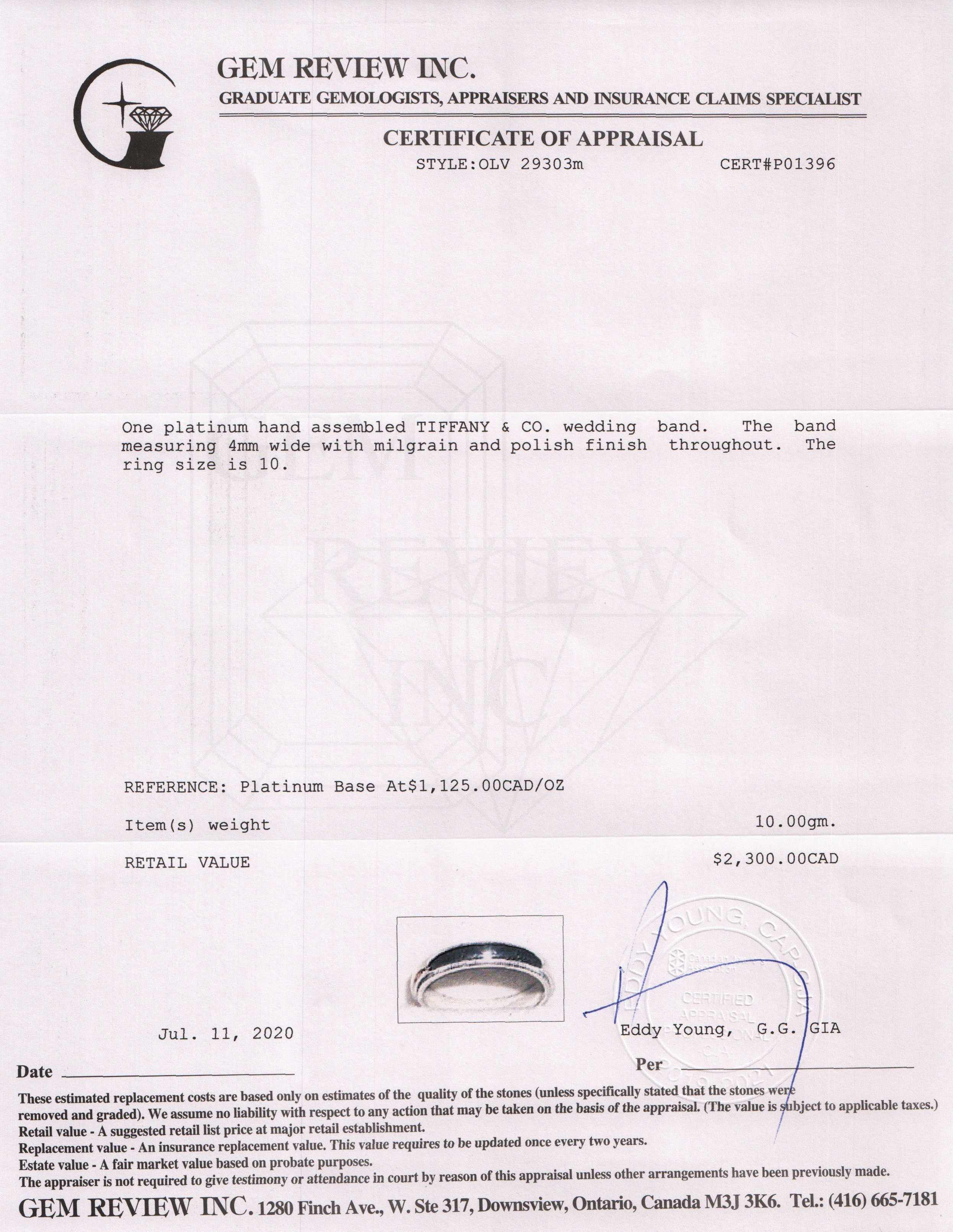 Tiffany & Co. Platinum Classic Milgrain Wedding Band Ring