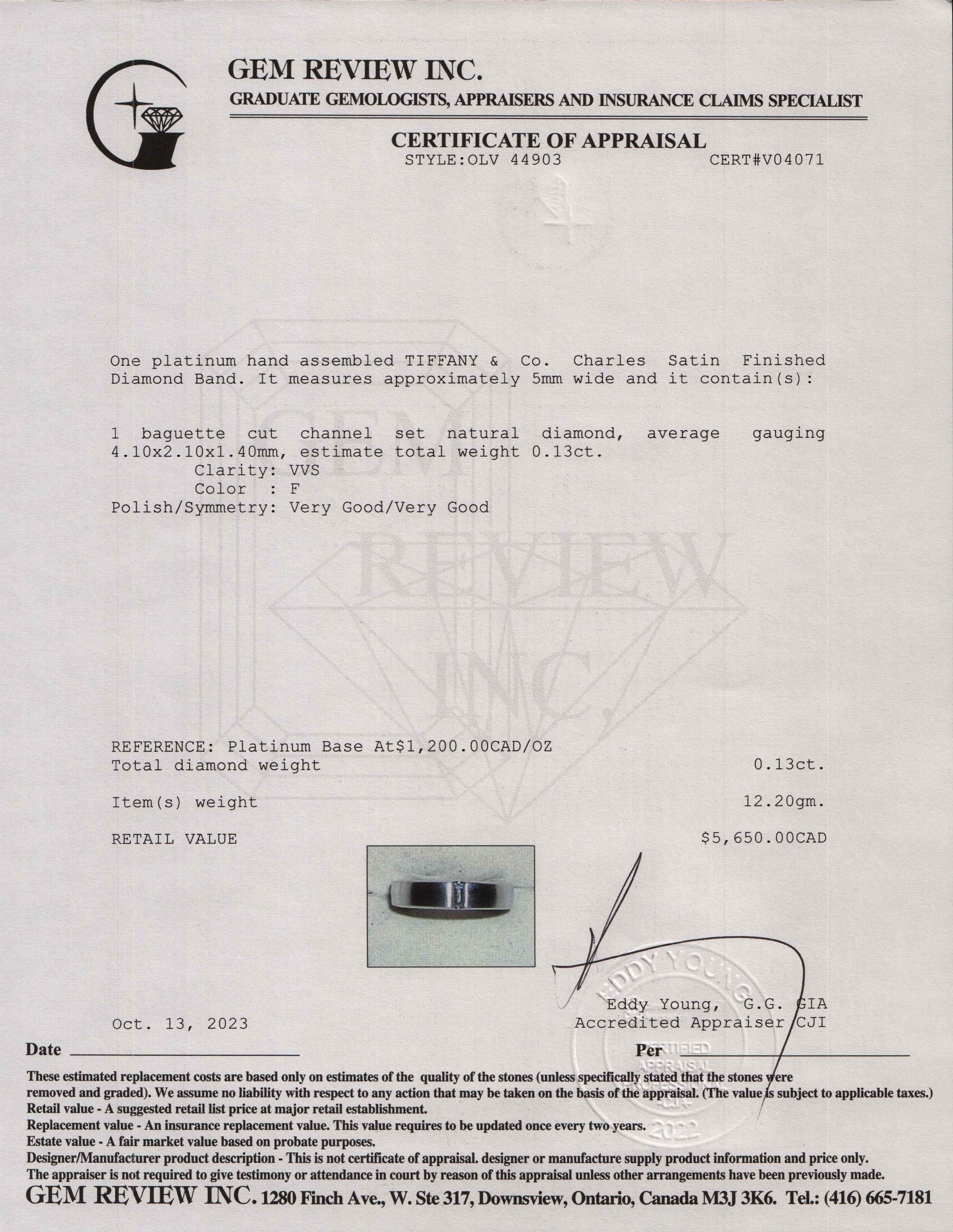 Platinum Diamond Charles Satin Finish Setting 5 MM Band Ring, Size 7 w/ Box