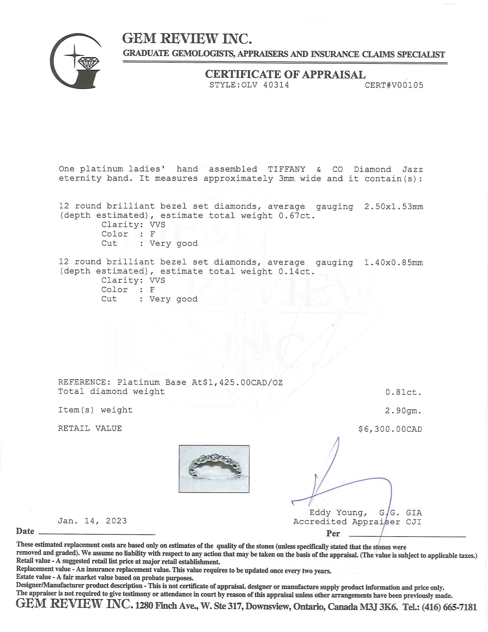 Tiffany & Co. Platinum Diamond Jazz Eternity Band Ring