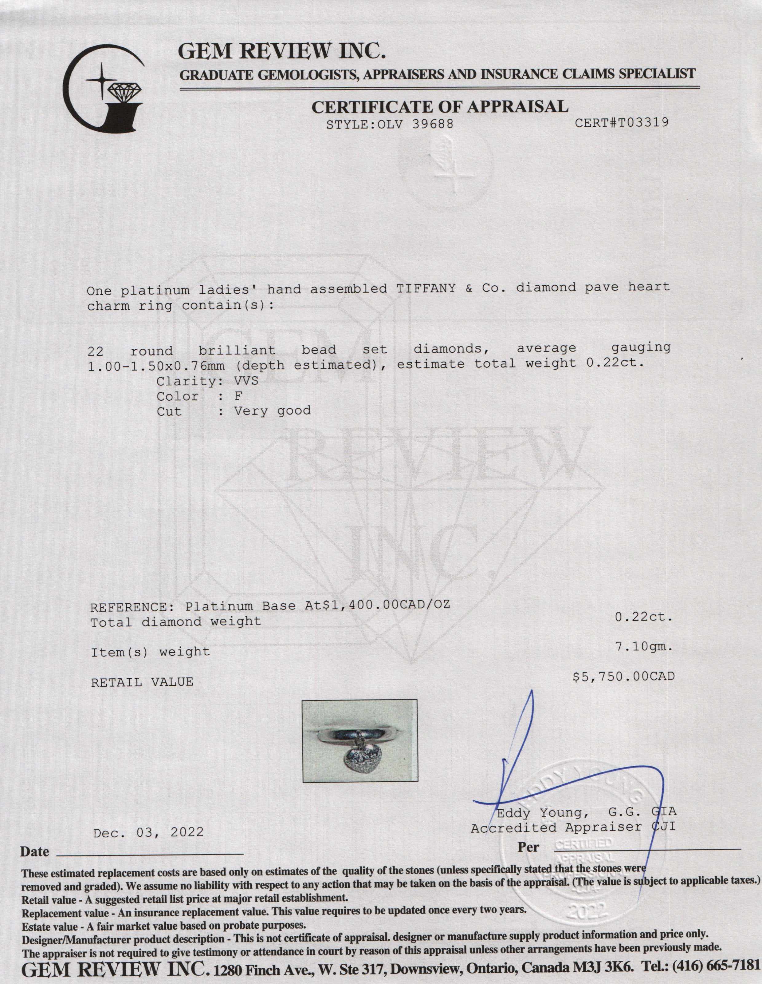 Tiffany & Co. Platinum Diamond Pave Heart Charm Ring