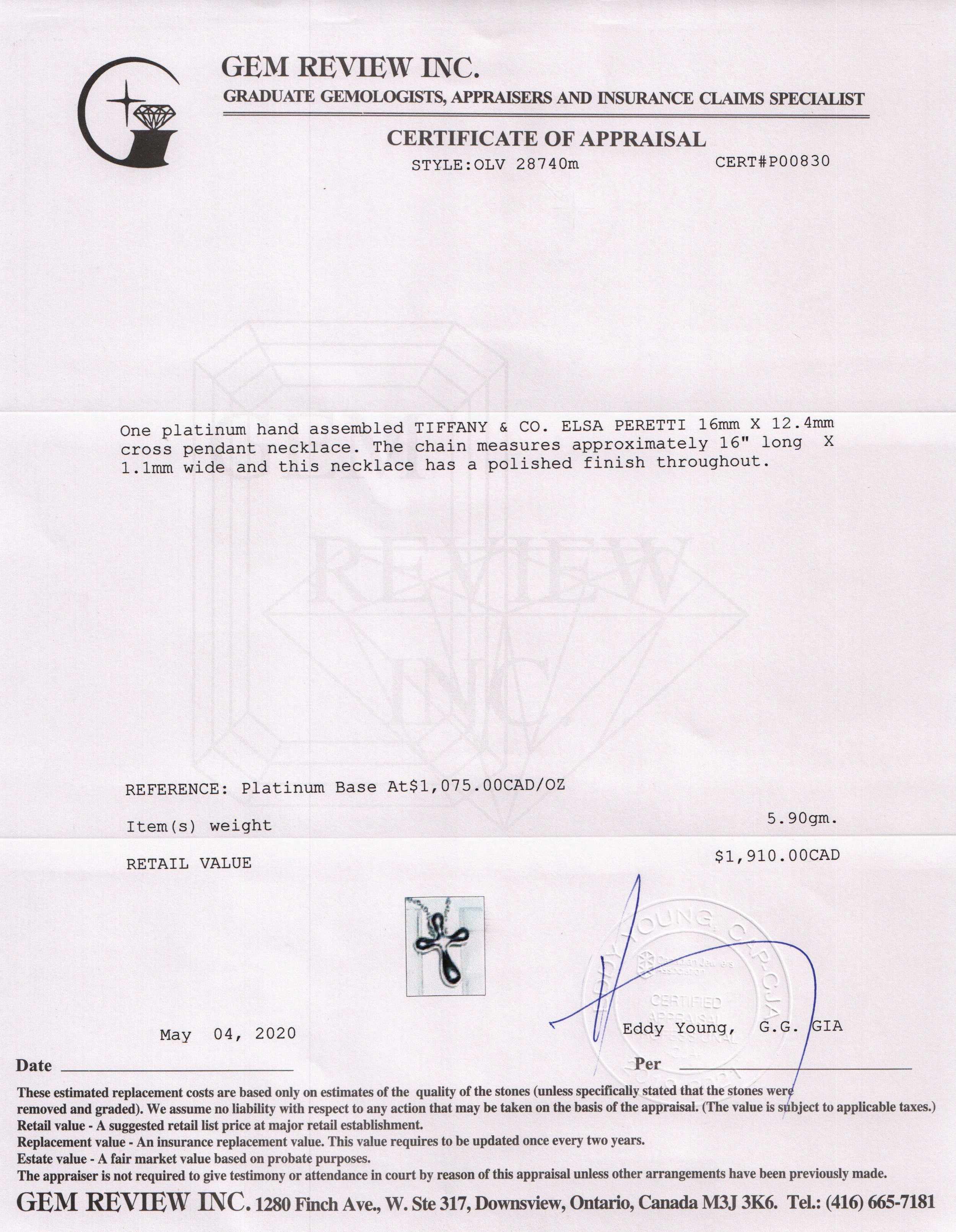 Tiffany & Co. Platinum Elsa Peretti Cross Pendant Necklace