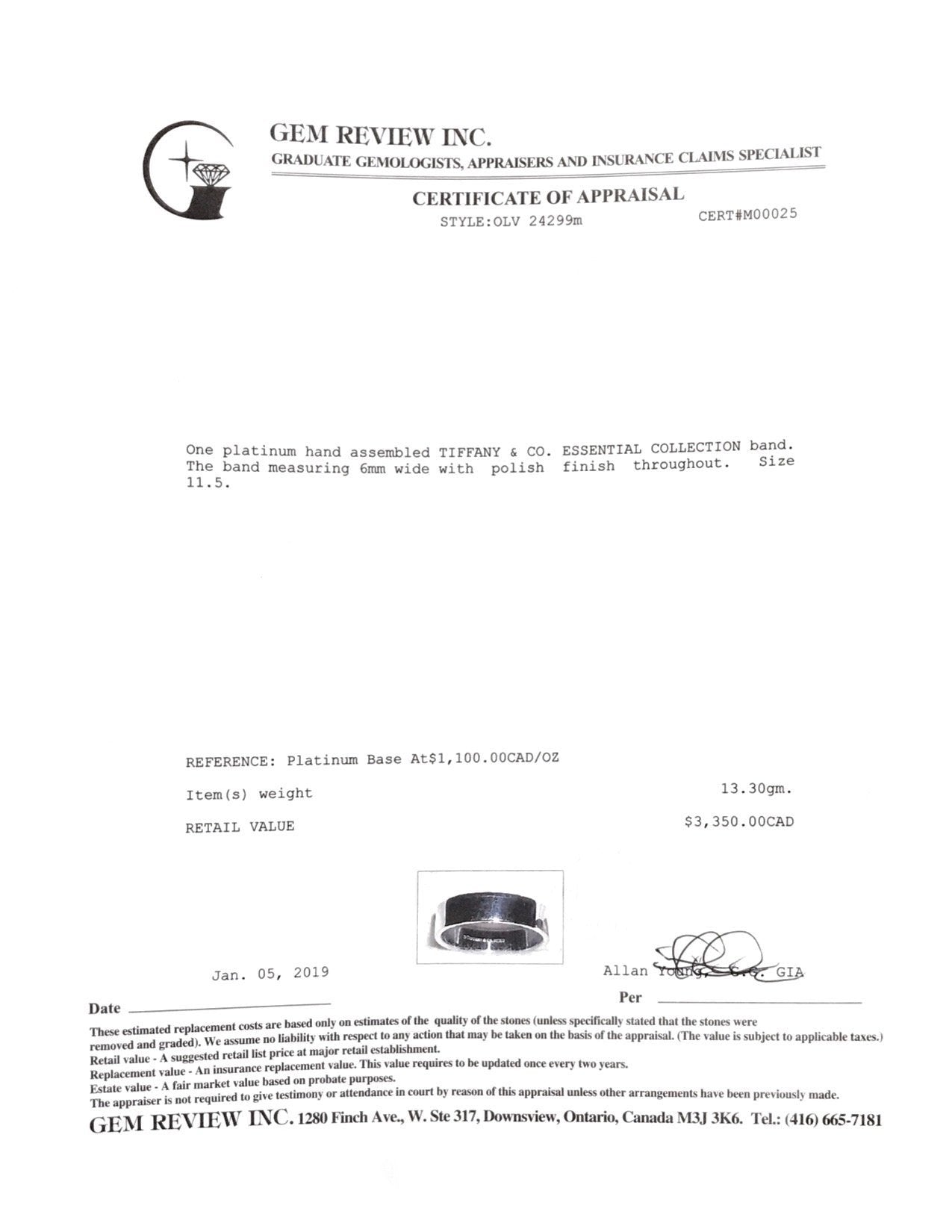 Tiffany & Co. Platinum Essential Band Ring