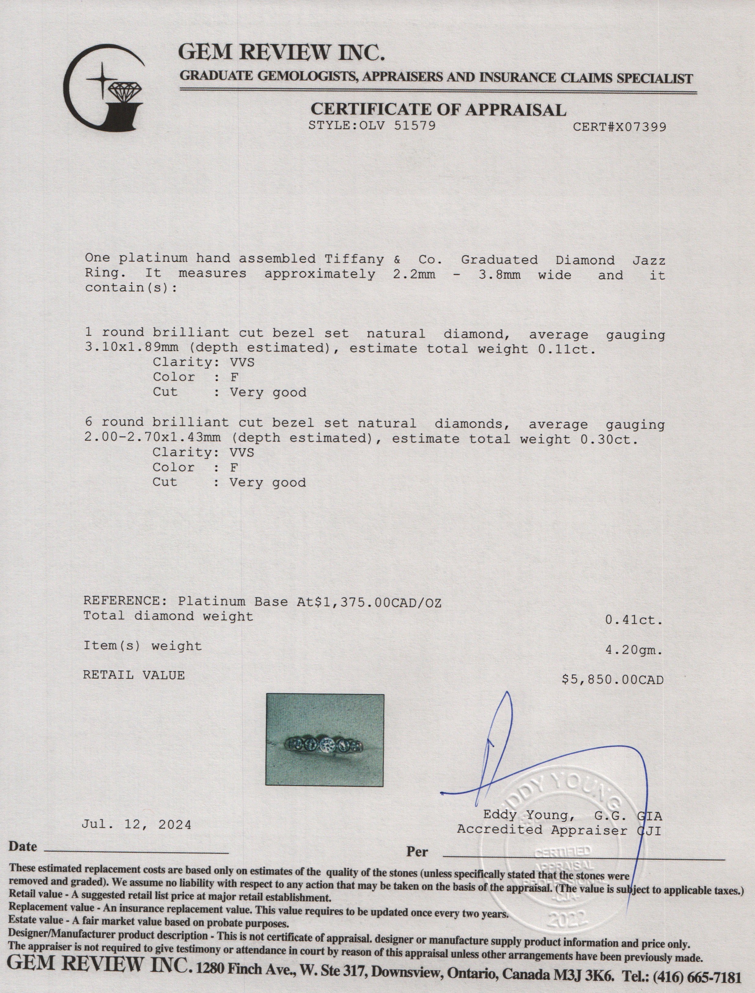 Platinum Graduated Diamond Jazz Ring, Size 5
