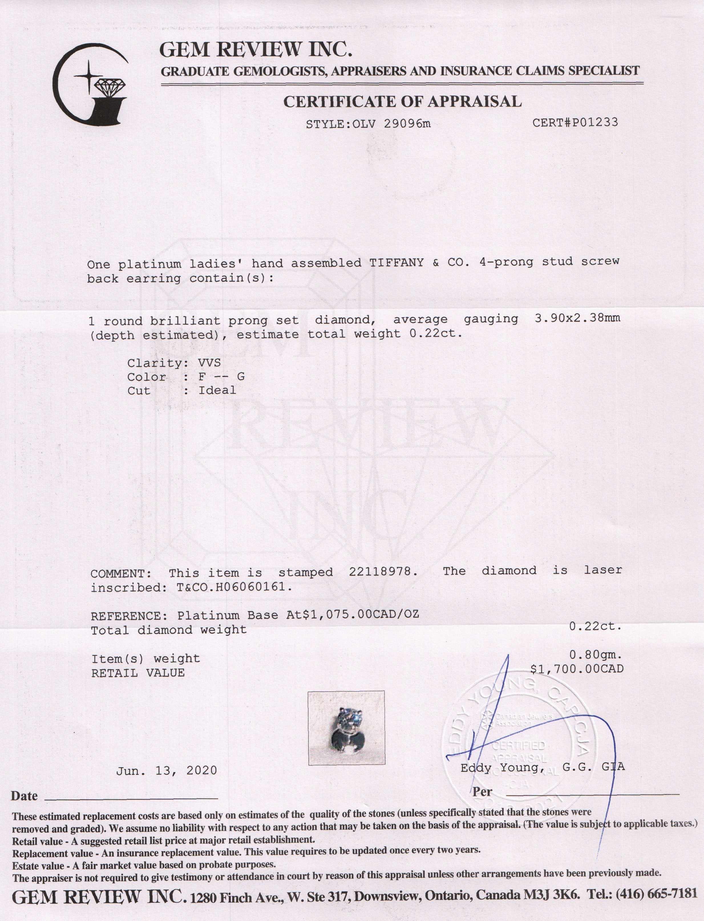Tiffany & Co. Platinum Single Diamond Stud Earring
