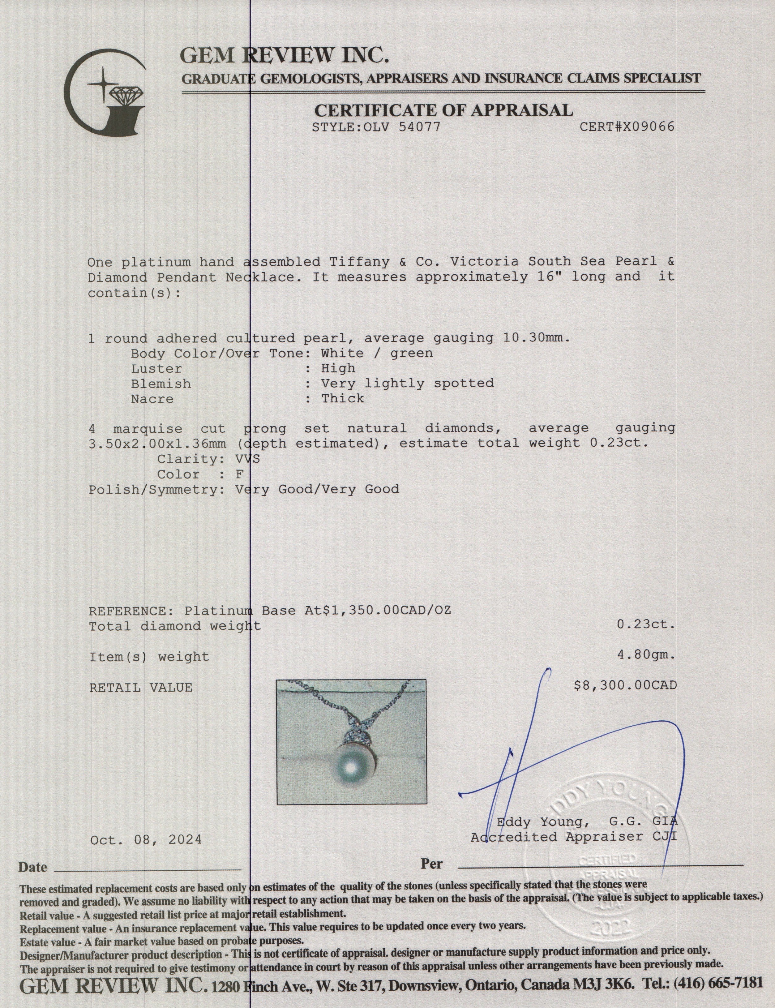 Platinum Victoria South Sea Pearl & Diamond Pendant Necklace