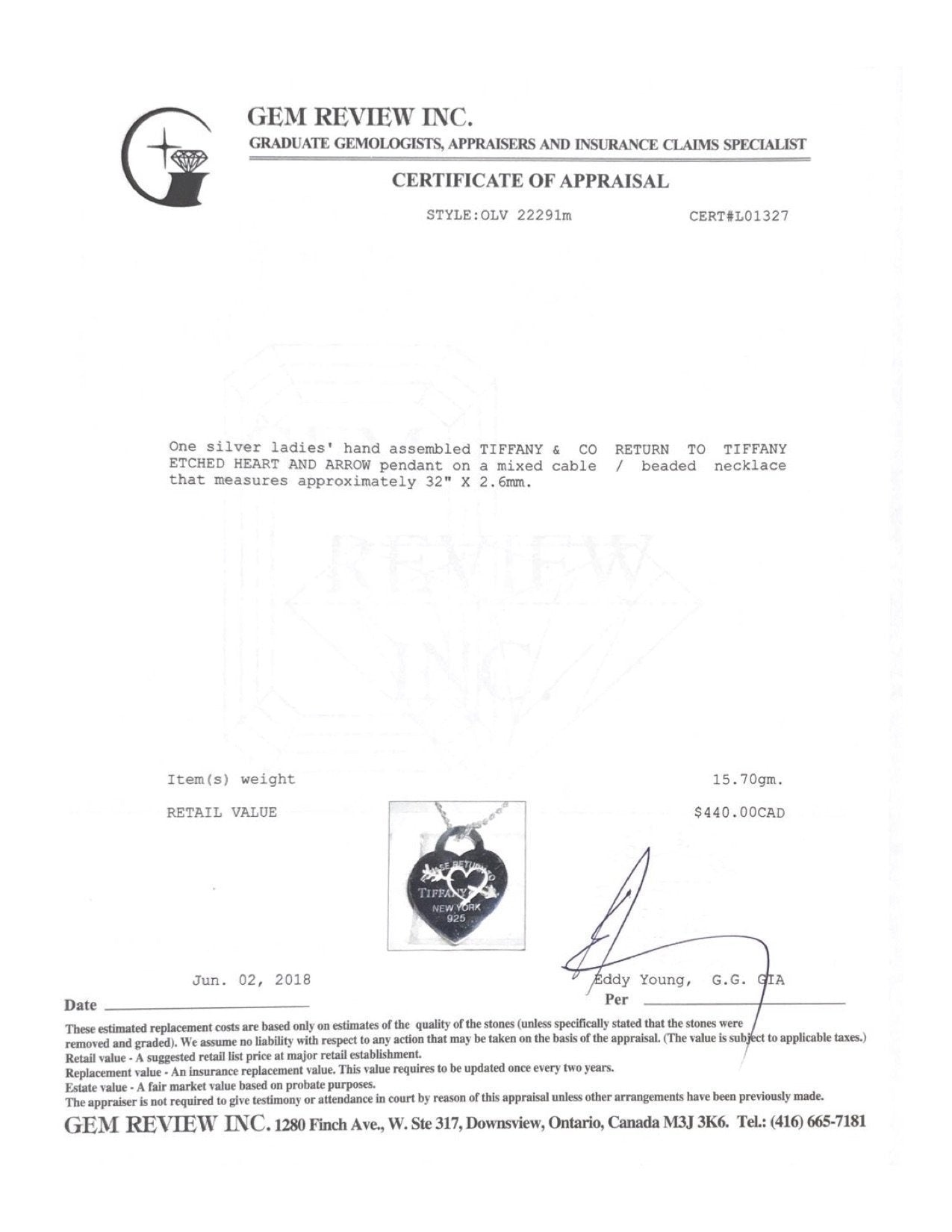 Tiffany & Co. Return to Tiffany Etched Heart and Arrow Pendant Necklace