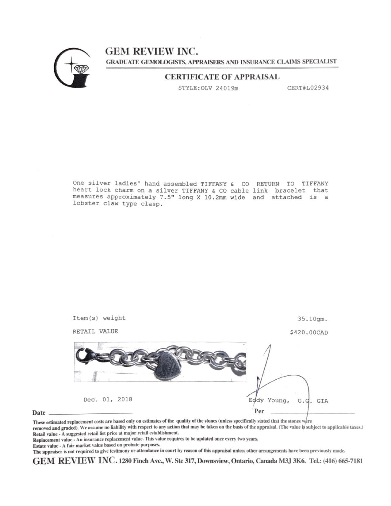 Tiffany & Co. Return to Tiffany Heart Lock Charm Bracelet