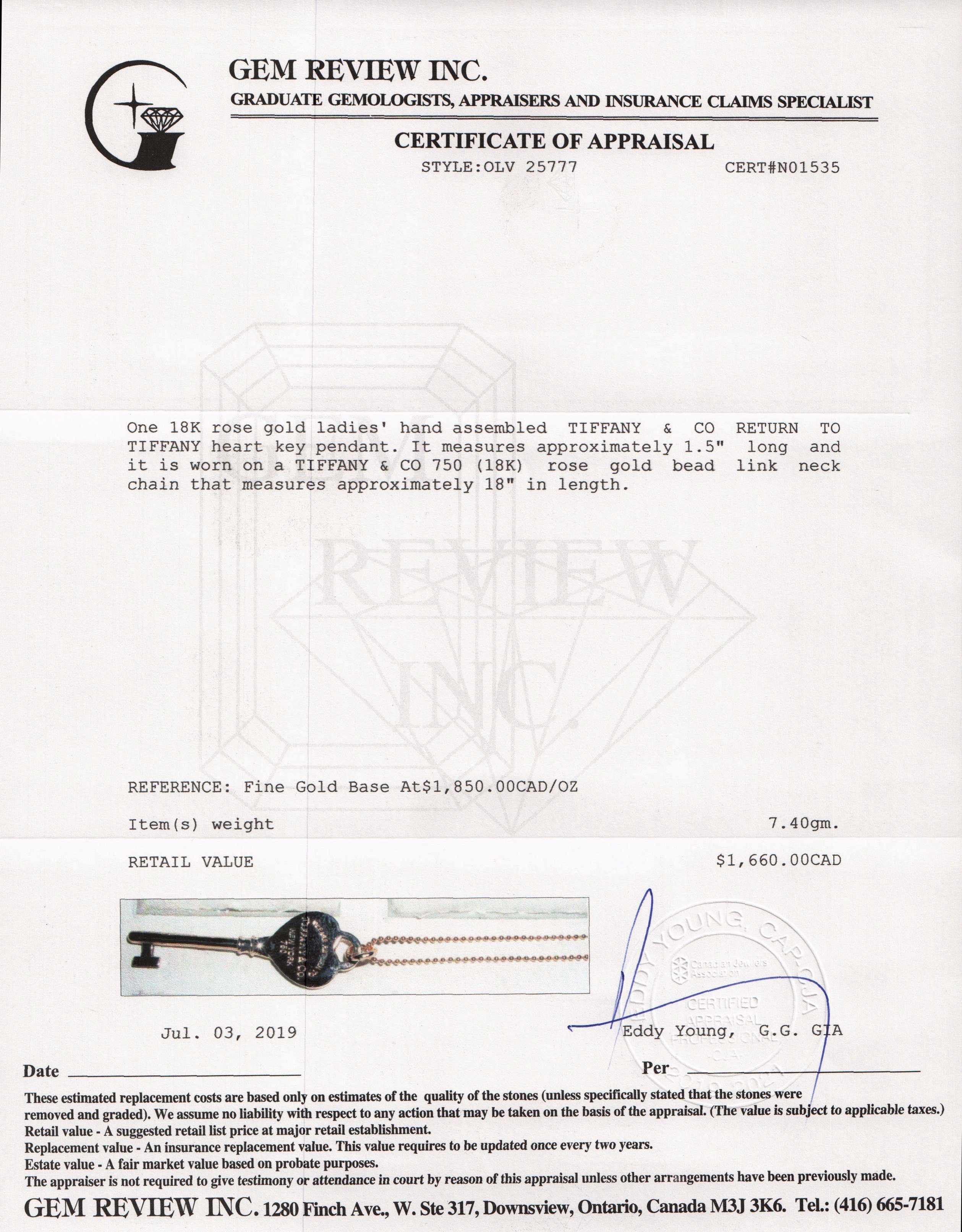Rose Gold Return to Tiffany Heart Key Pendant Necklace
