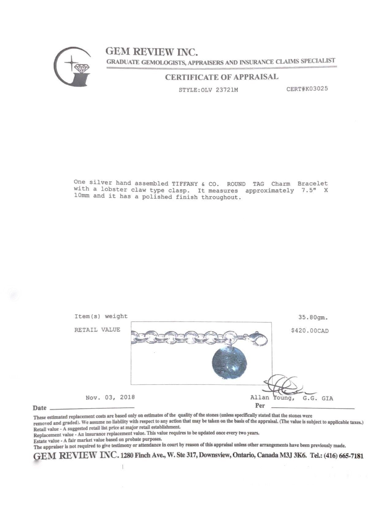 - Round Tag Charm, Approximately 23.6 mm Wide