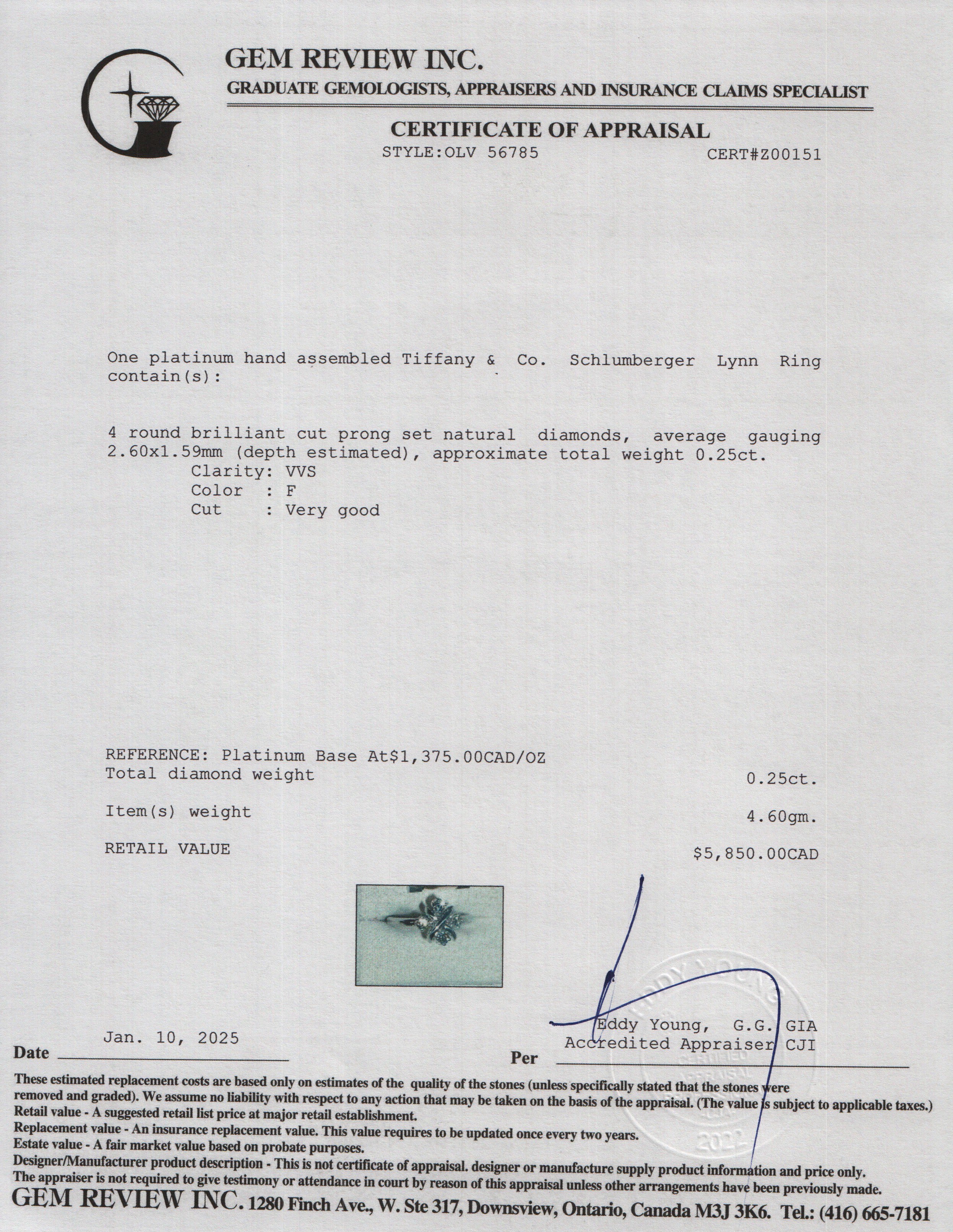 Schlumberger Platinum Diamond Lynn Ring, Size 4
