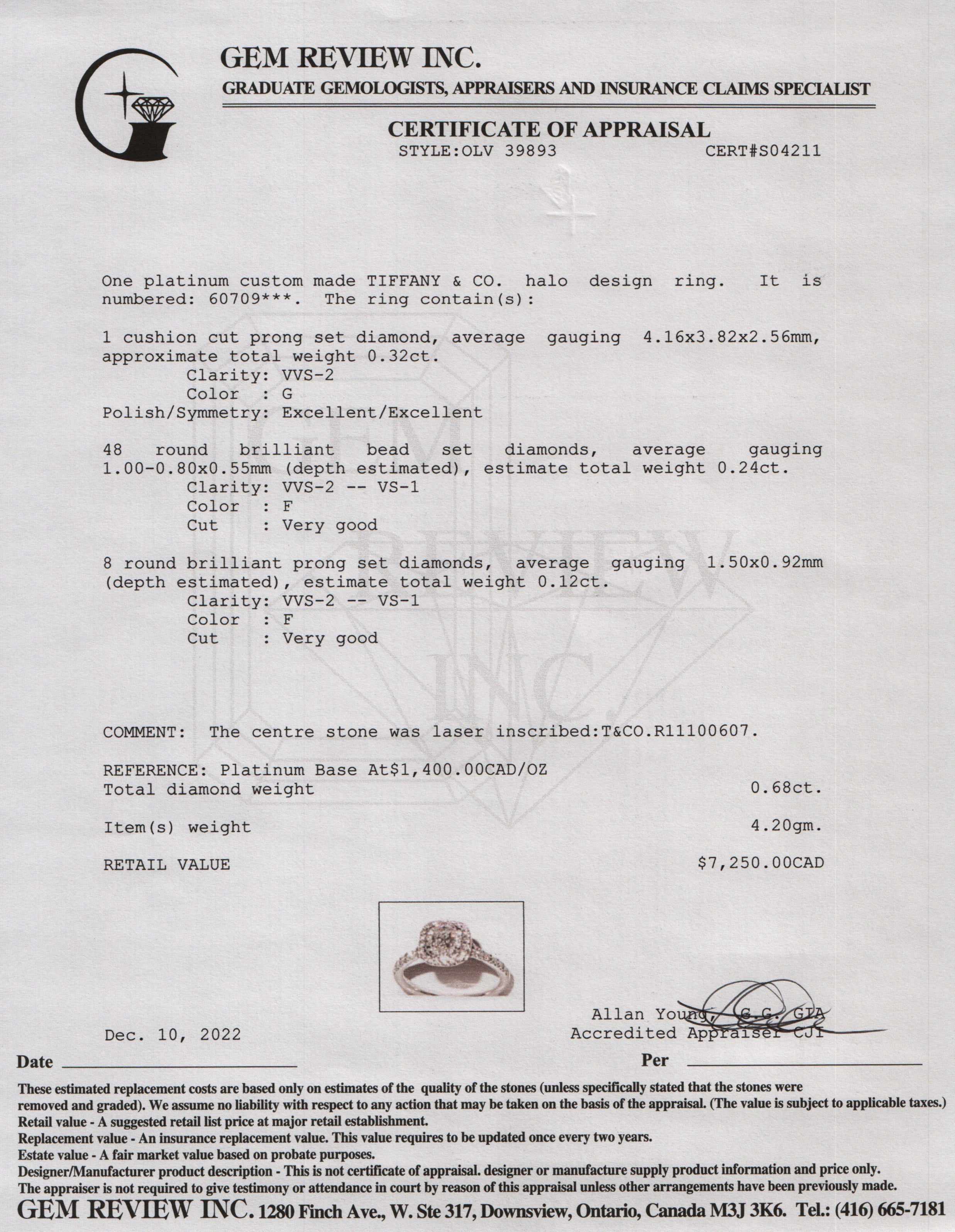 Included Items: Original Tiffany & Co. Box & Diamond Certificate and Gem Review Appraisal