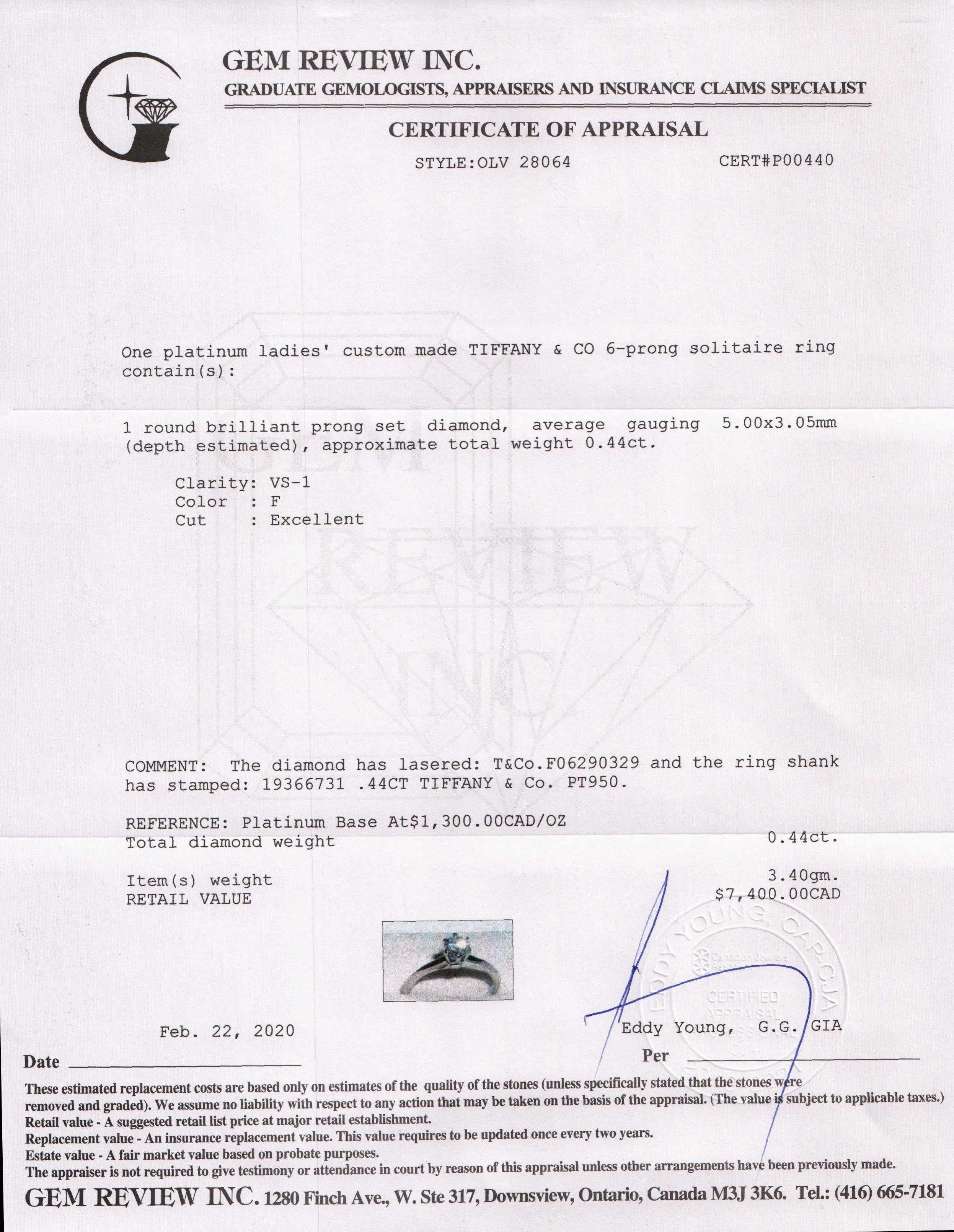 - Signature/Hallmarks: Tiffany & Co. PT950 .44CT 19366731