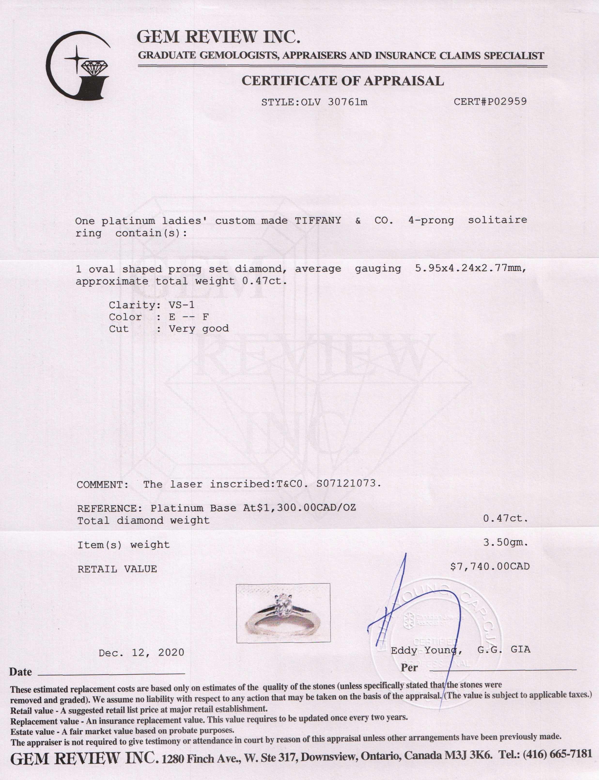 Tiffany & Co. Solitaire 0.47 ct. Oval Cut Diamond Engagement Ring