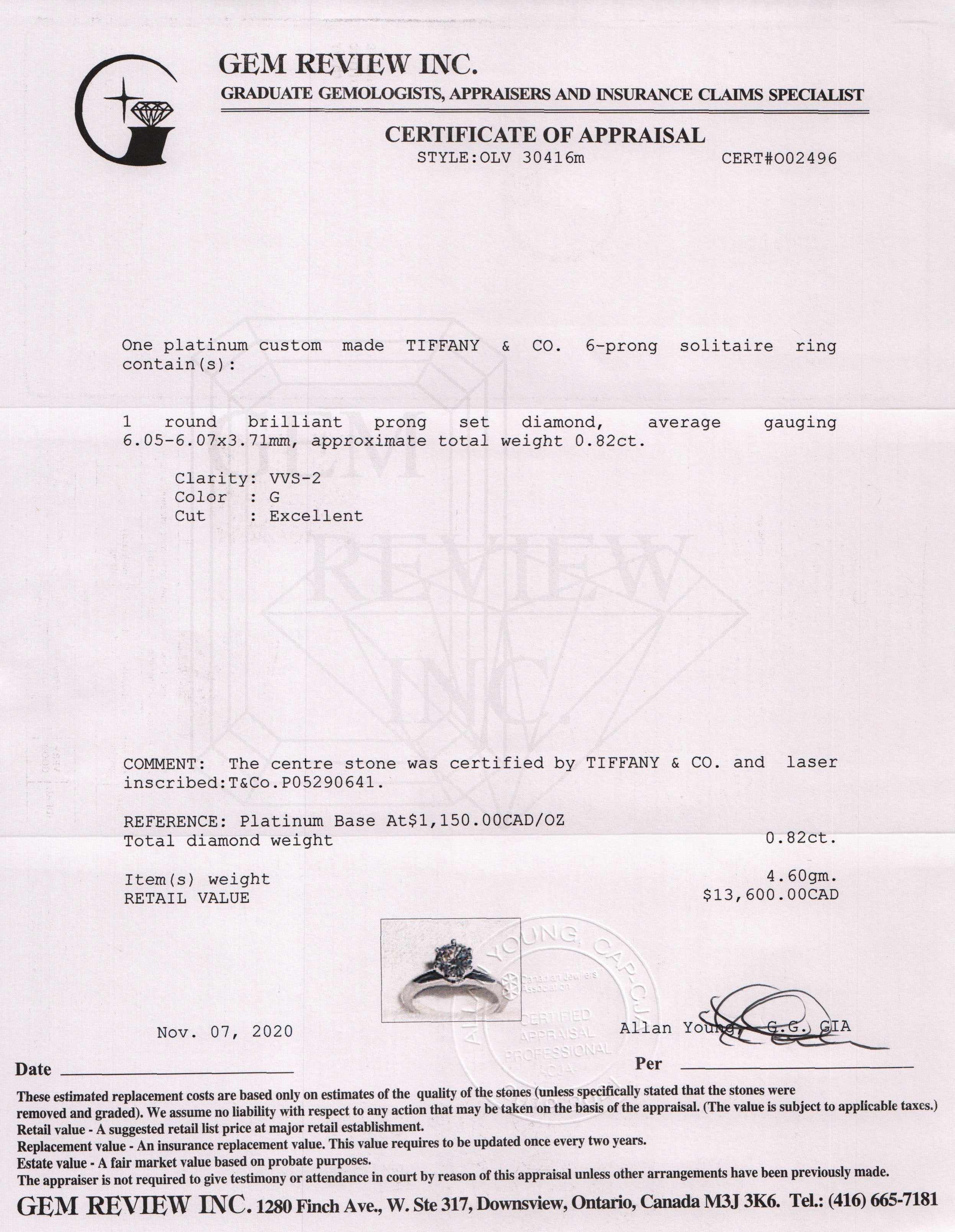Included Items: Original Tiffany Diamond Certificate, Paperworks and Gem Review Appraisal