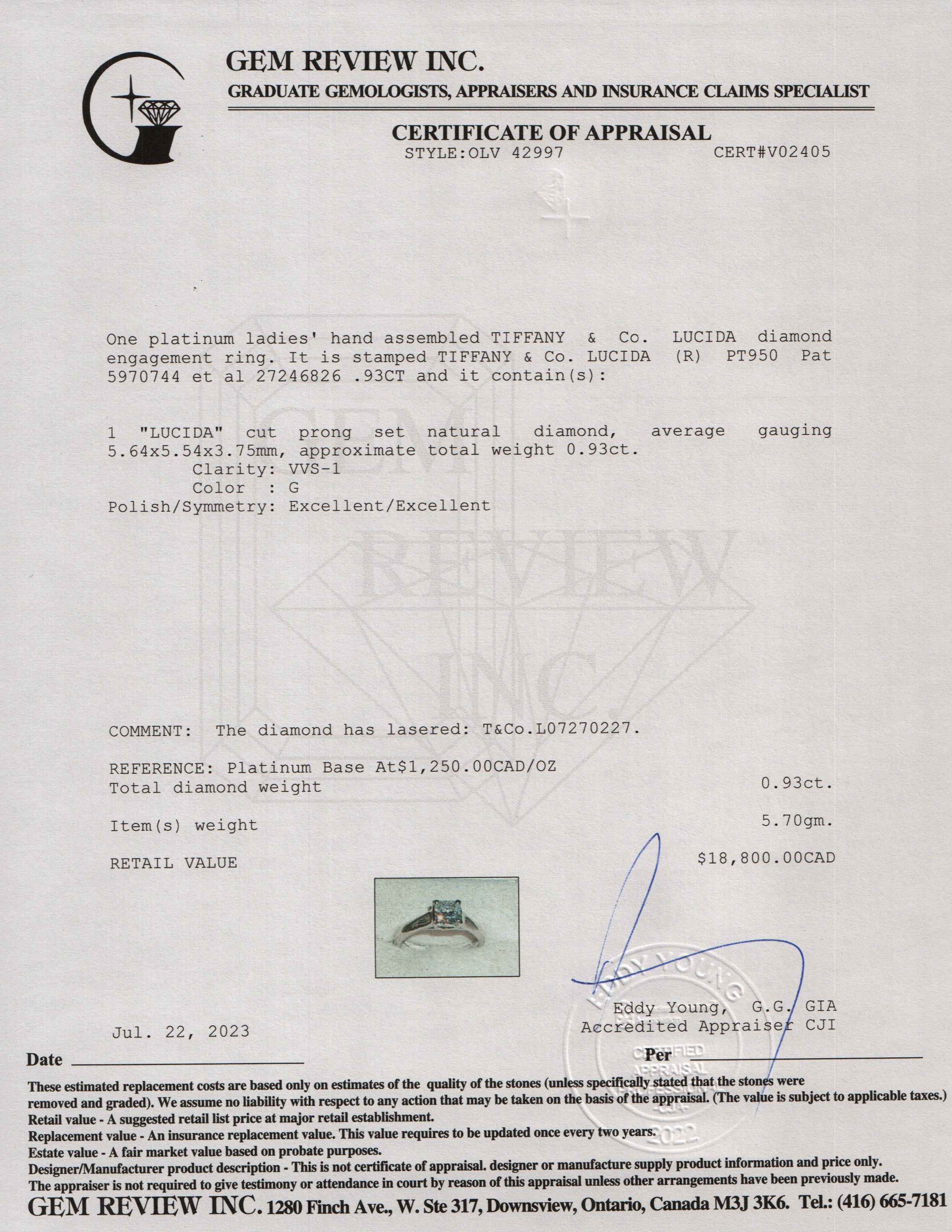 Tiffany & Co. Solitaire 0.93 ct. Lucida Diamond Engagement Ring