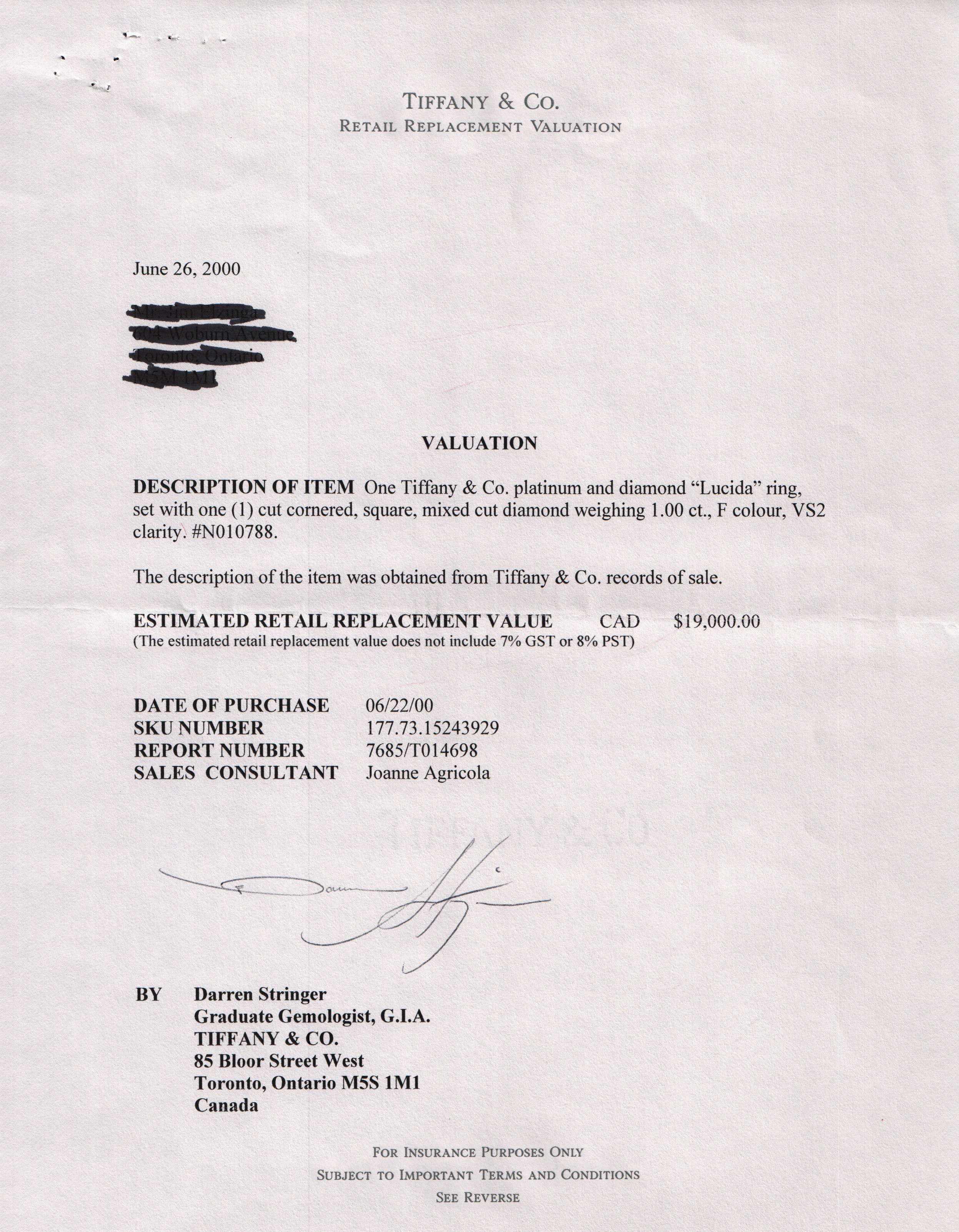 Included Items: Tiffany Diamond Certificate, Paperwork, GIA Certificate and Gem Review Appraisal