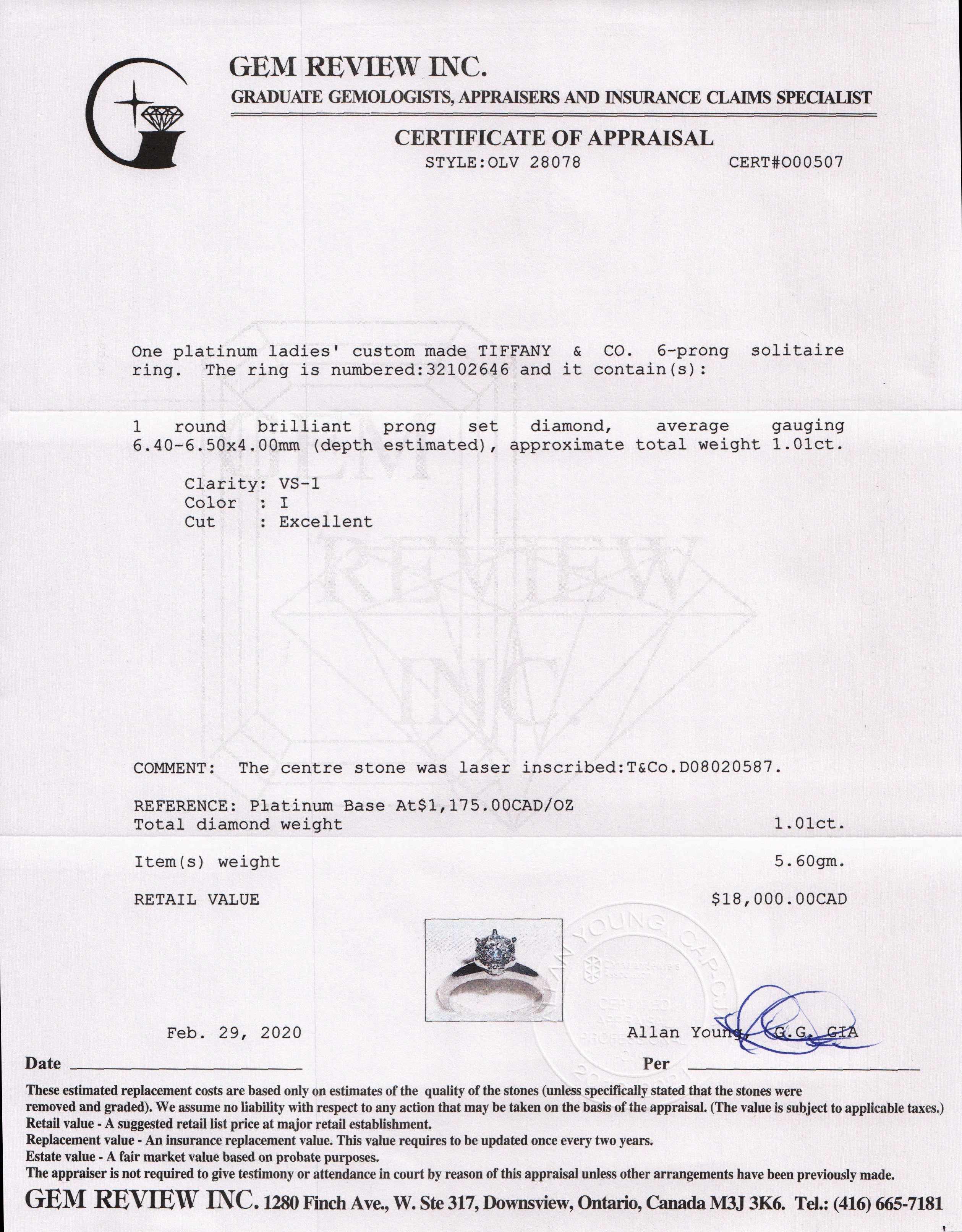 Included Items: Tiffany & Co. Box & Valuation Report and Gem Review Appraisal
