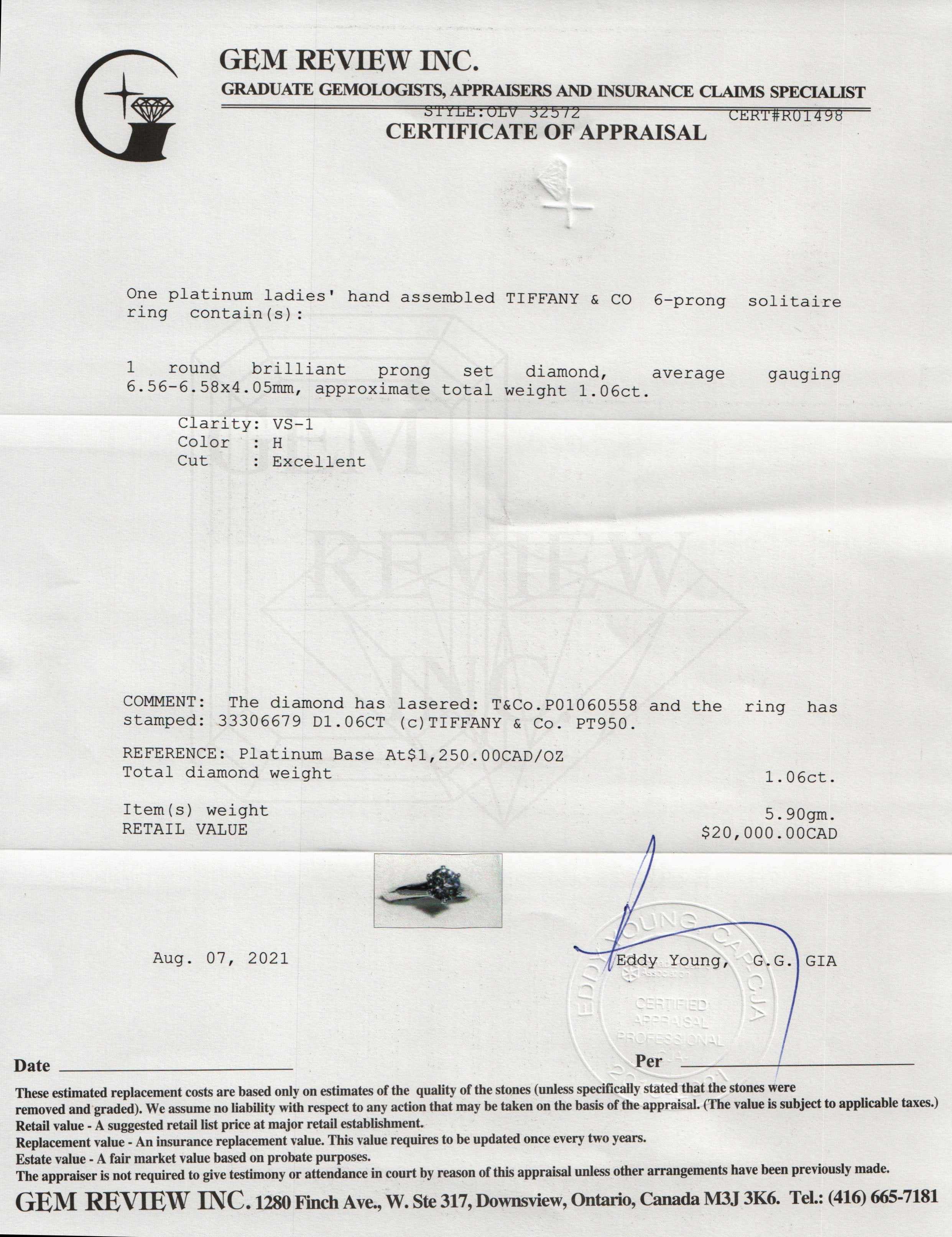 Tiffany & Co. Solitaire 1.06 ct. Diamond Engagement Ring