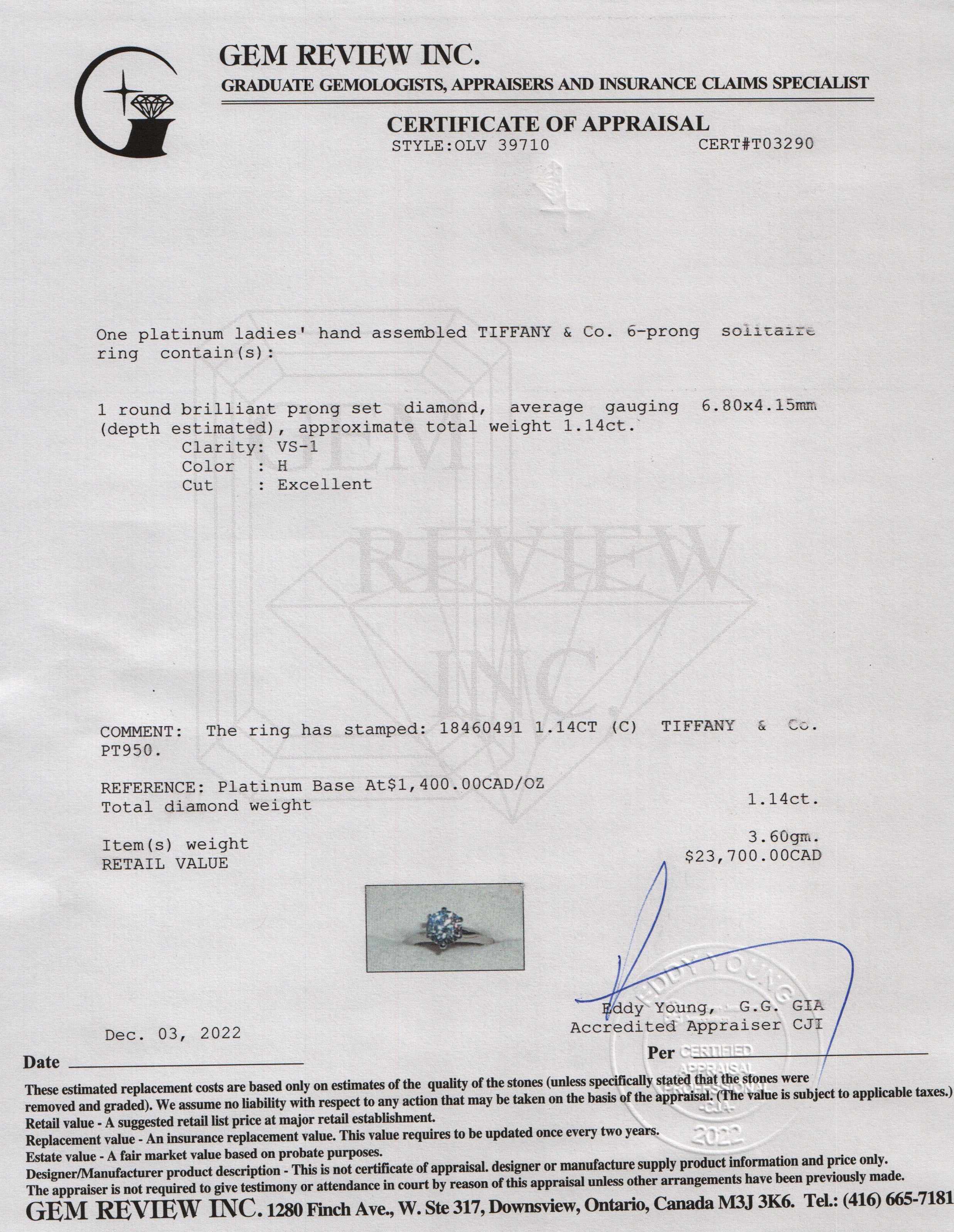 Tiffany & Co. Solitaire 1.14 ct. Diamond Engagement Ring