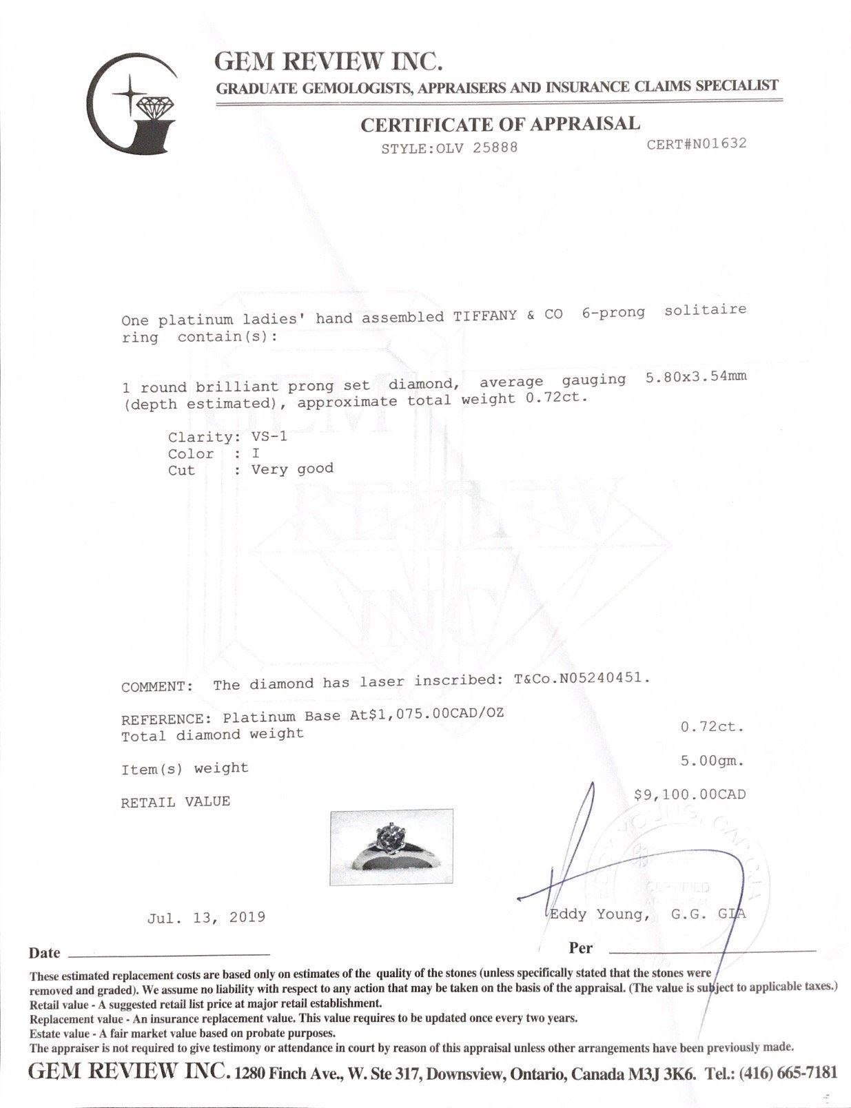 Included Items: Original Tiffany & Co. Paperwork & Gem Review Appraisal
