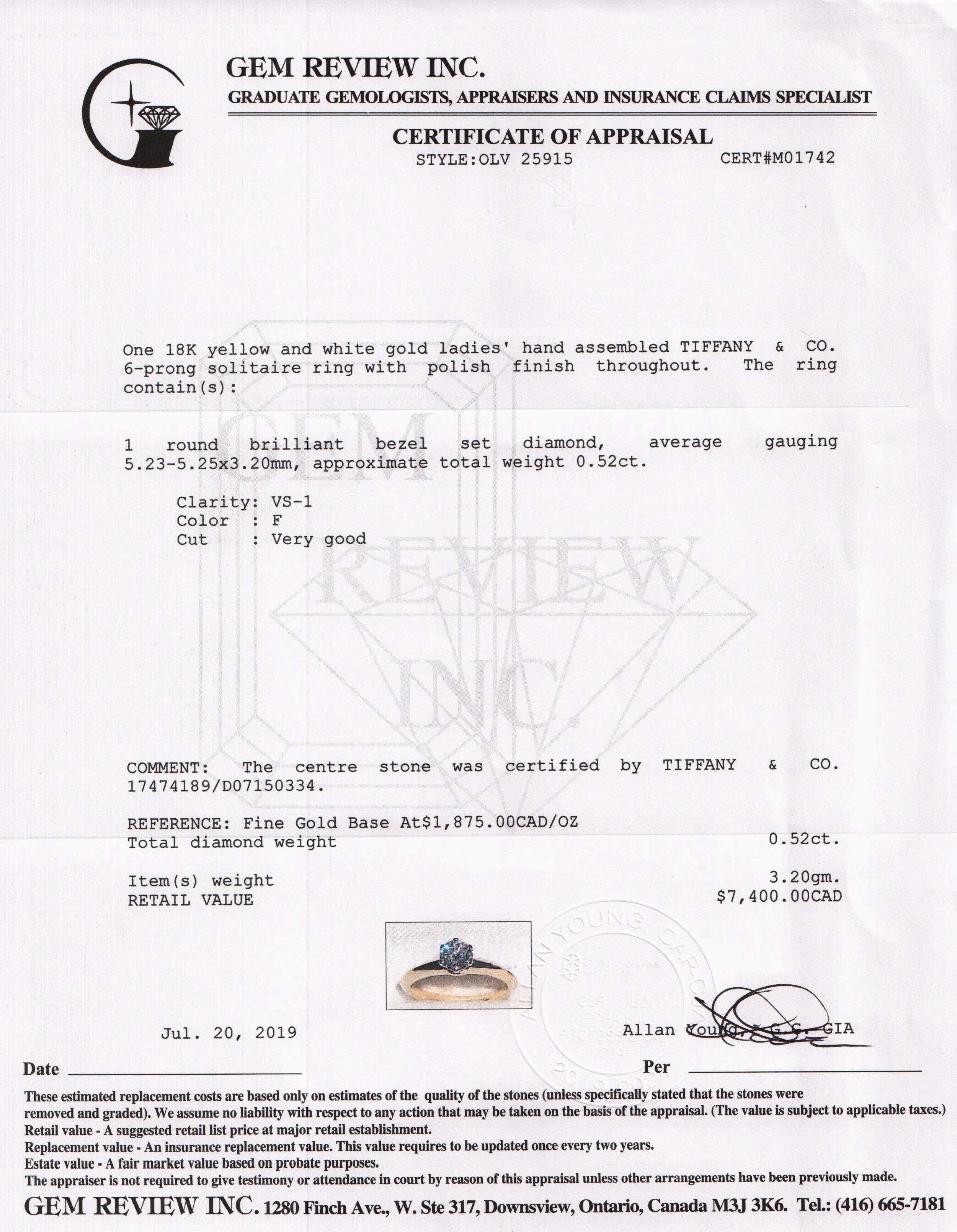 Included Items: Original Tiffany & Co. Diamond Certificate & Gem Review Appraisal