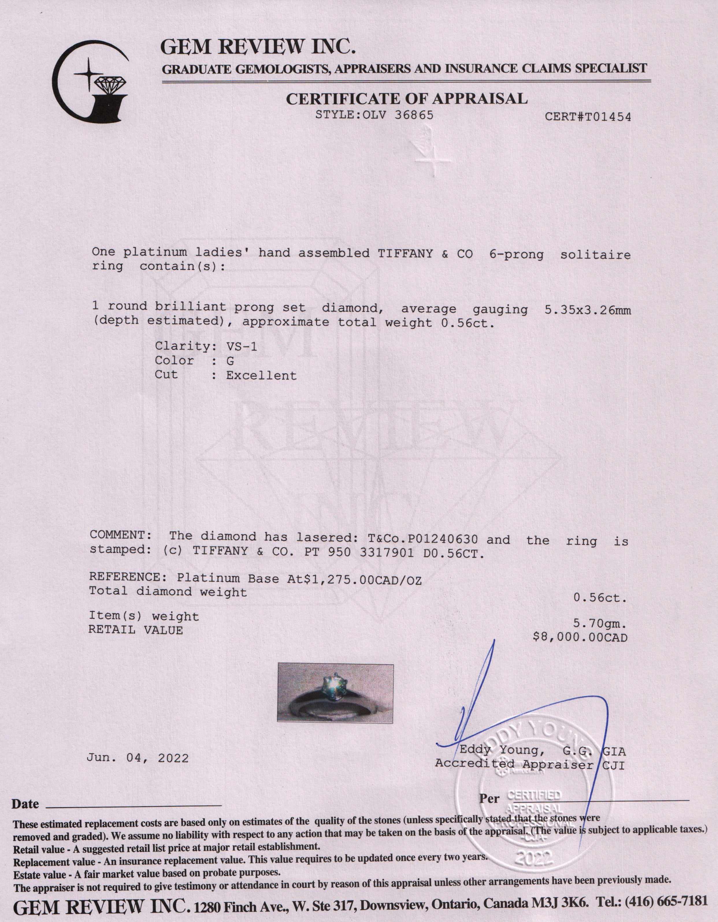 - Signature/Hallmarks: Tiffany & Co. PT950 3317*** D0.56 CT