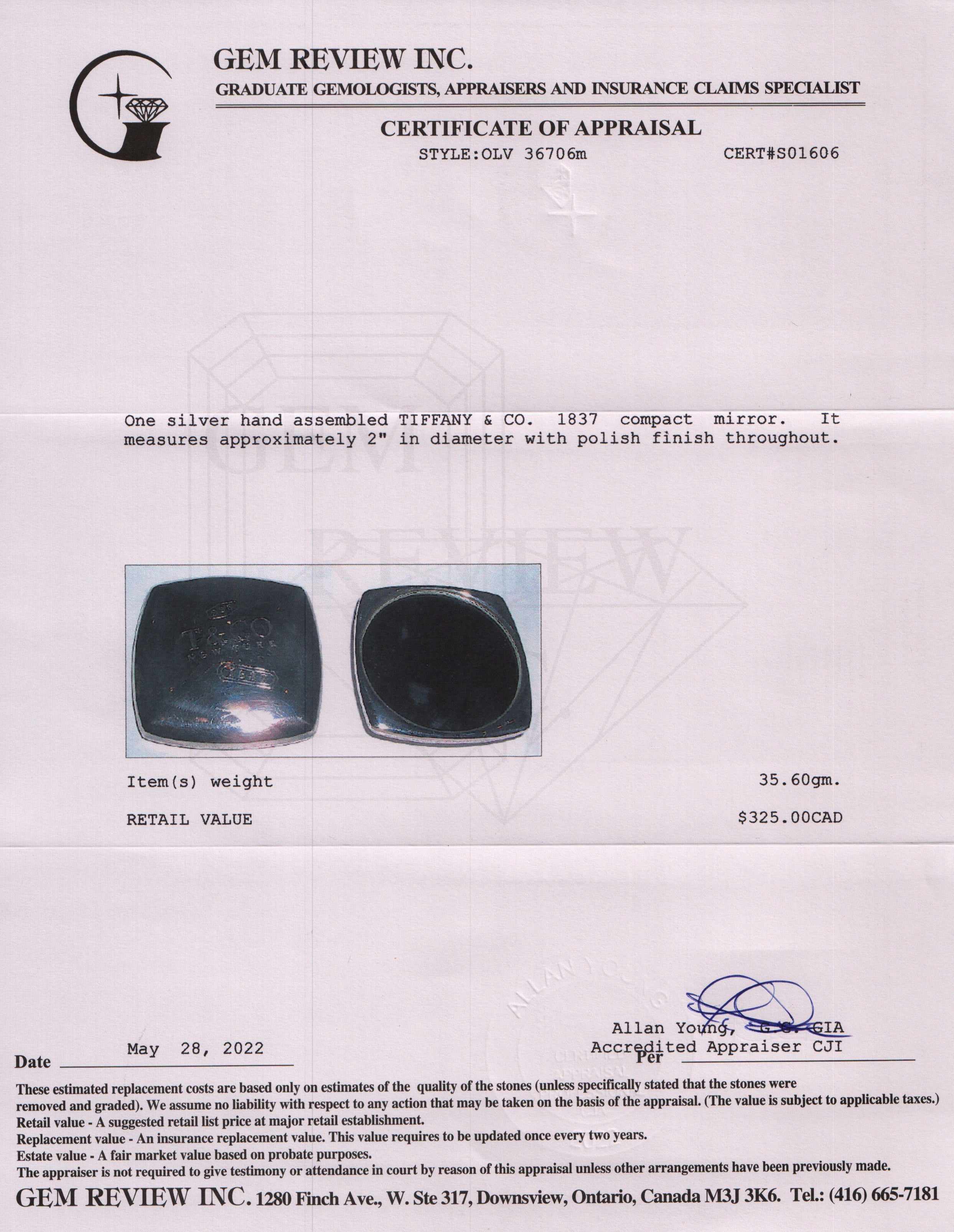 Included Items: Original Tiffany & Co. Pouch & Gem Review Appraisal