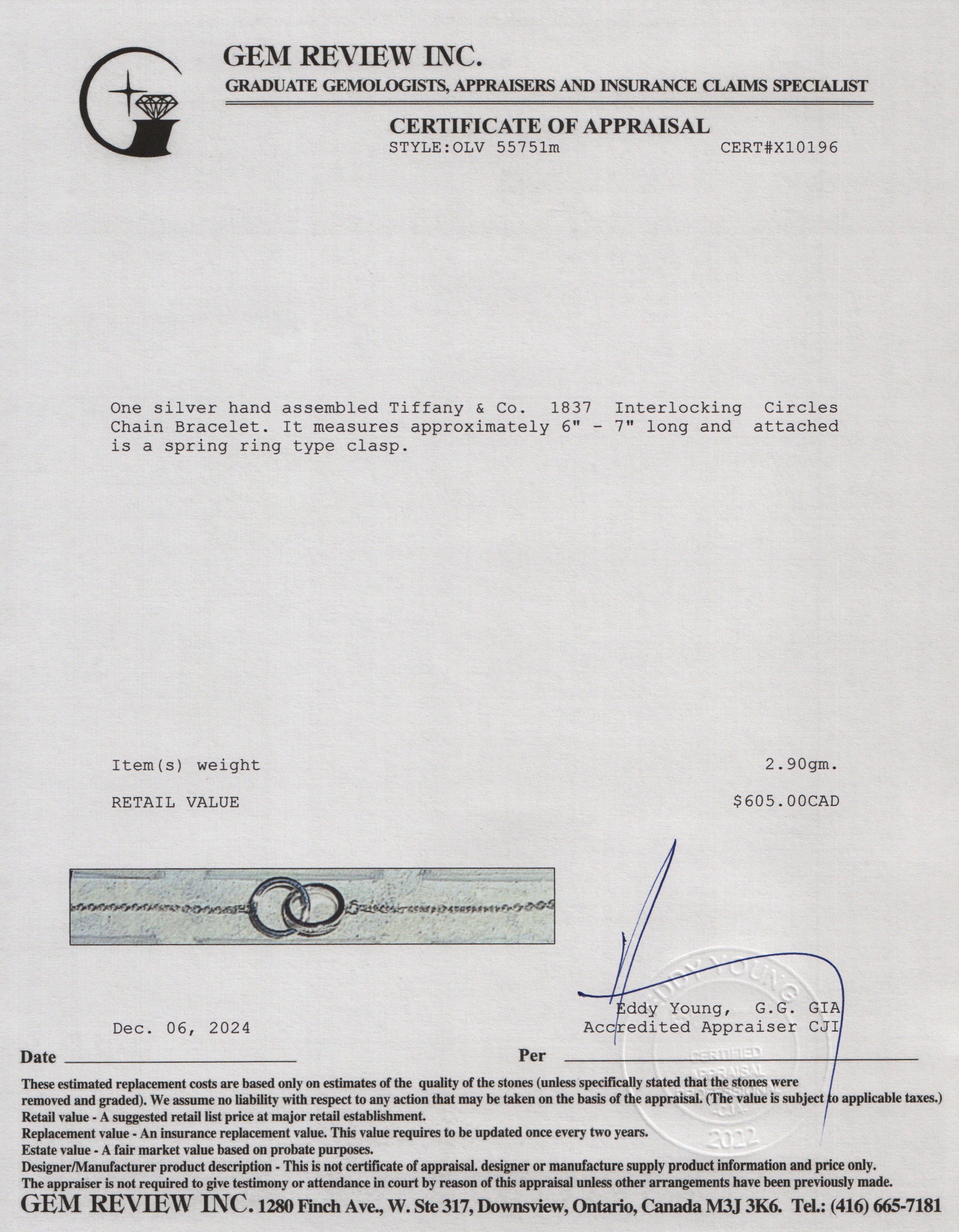 Sterling Silver 1837 Interlocking Circles Chain Bracelet