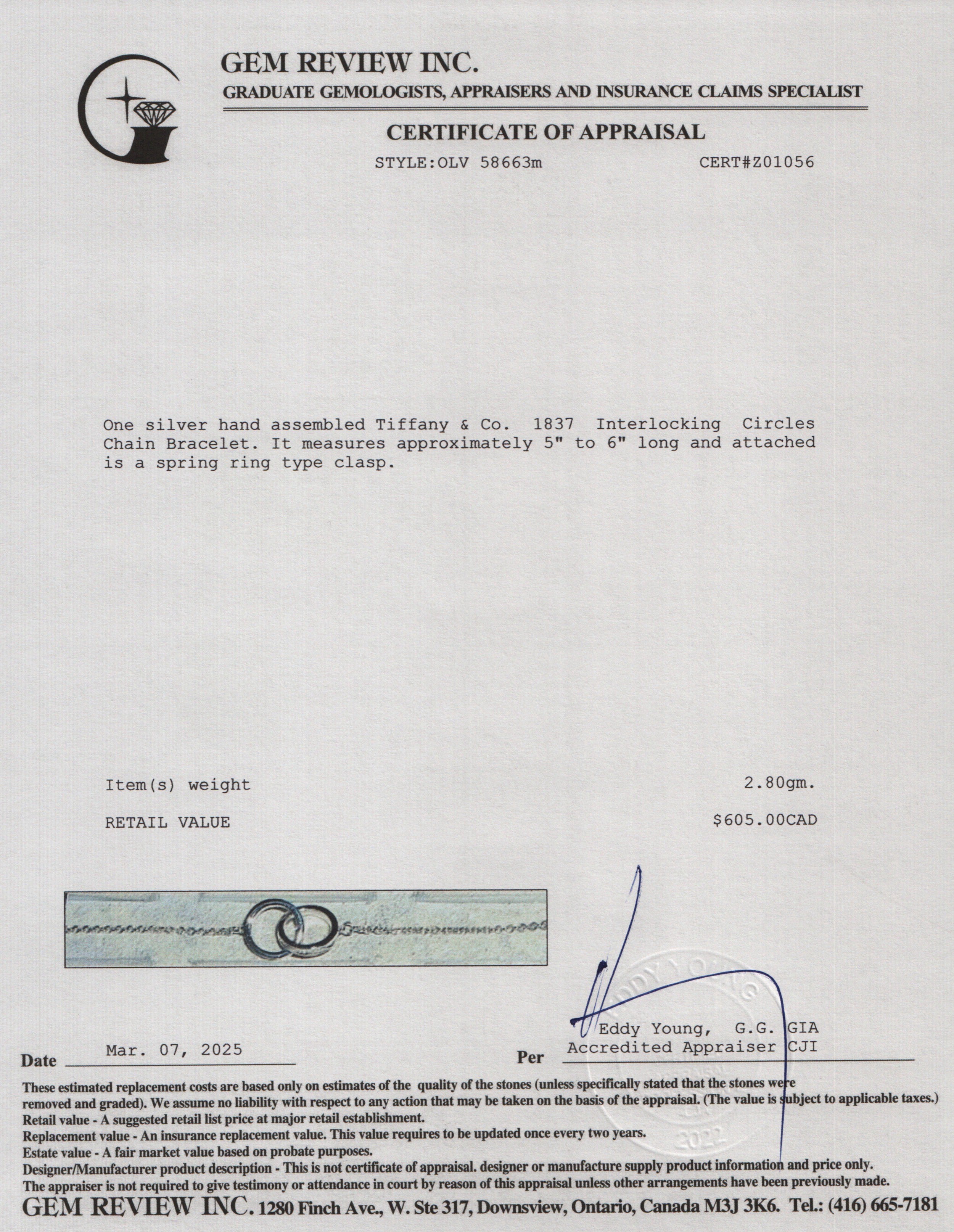 Sterling Silver 1837 Interlocking Circles Chain Bracelet