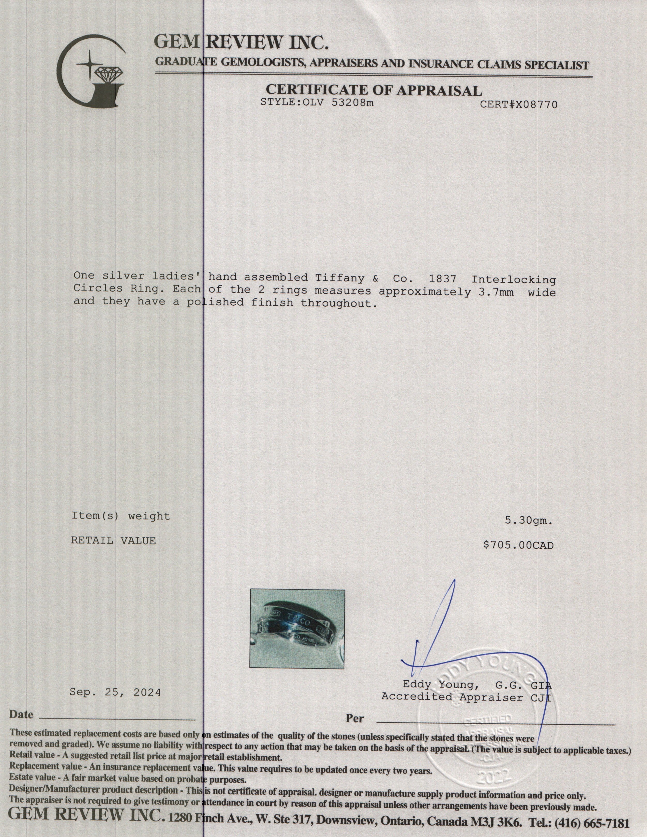Sterling Silver 1837 Interlocking Circles Ring, Size 6.5