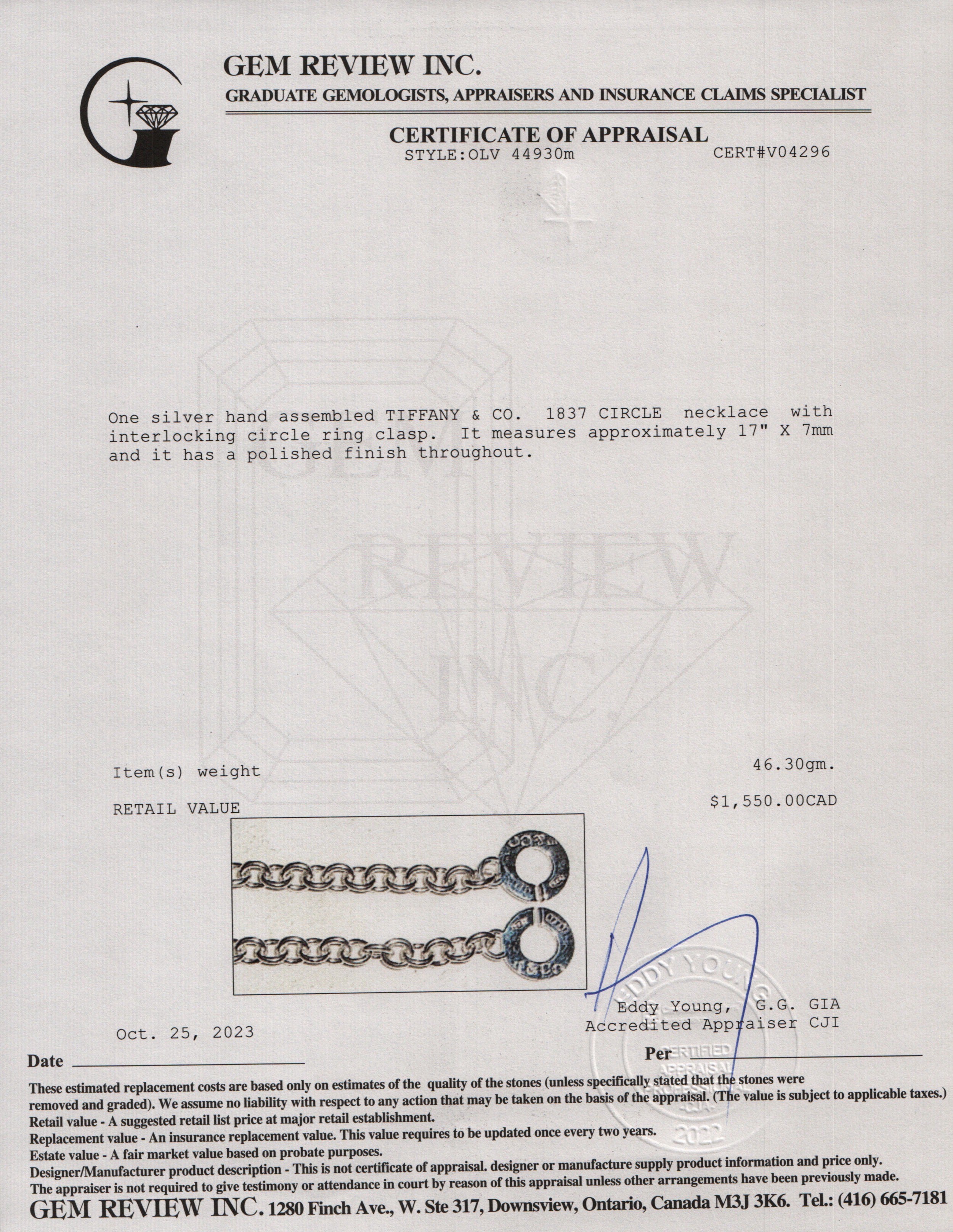 Sterling Silver 1837 Interlocking Necklace