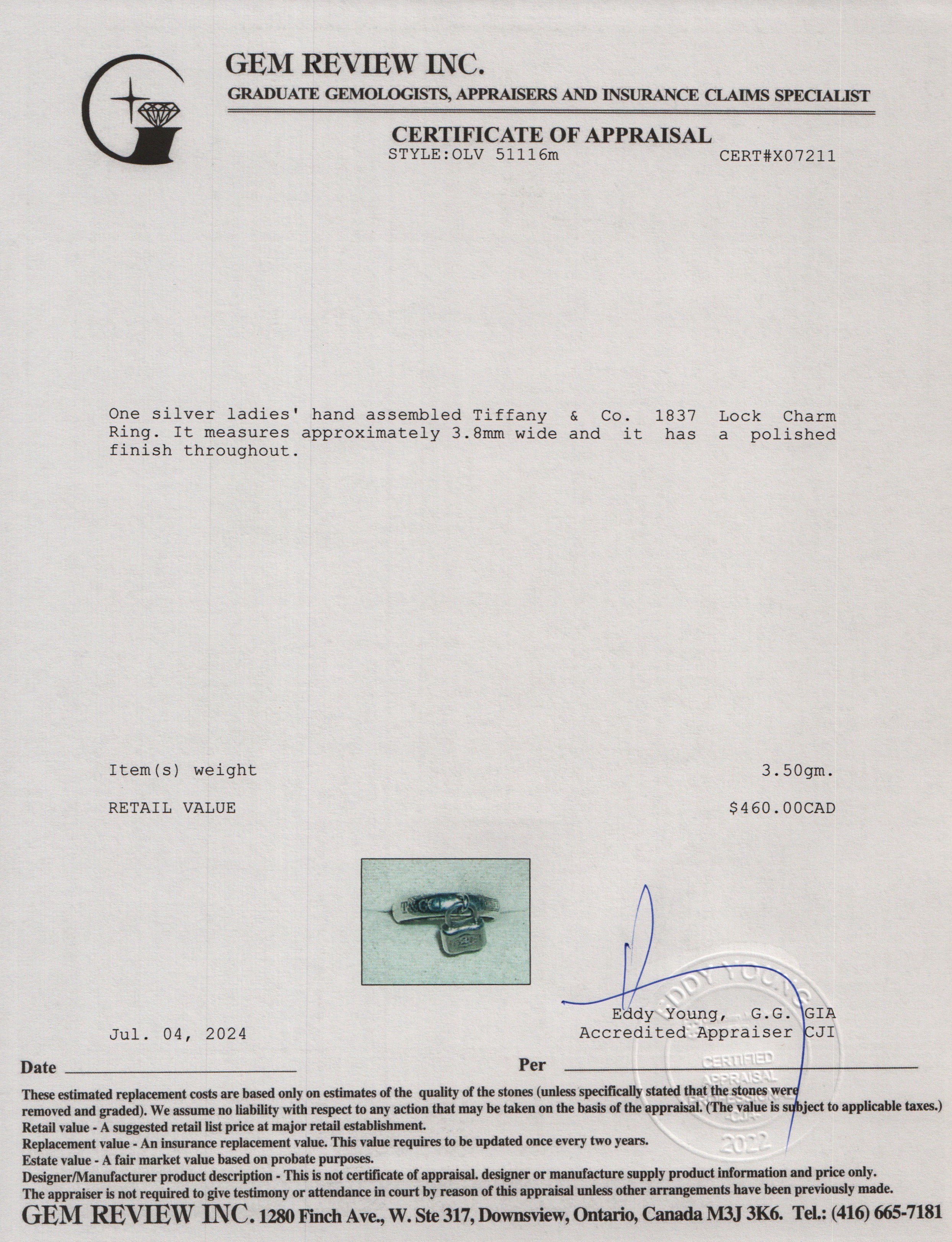 Sterling Silver 1837 Lock Charm Ring, Size 5.5