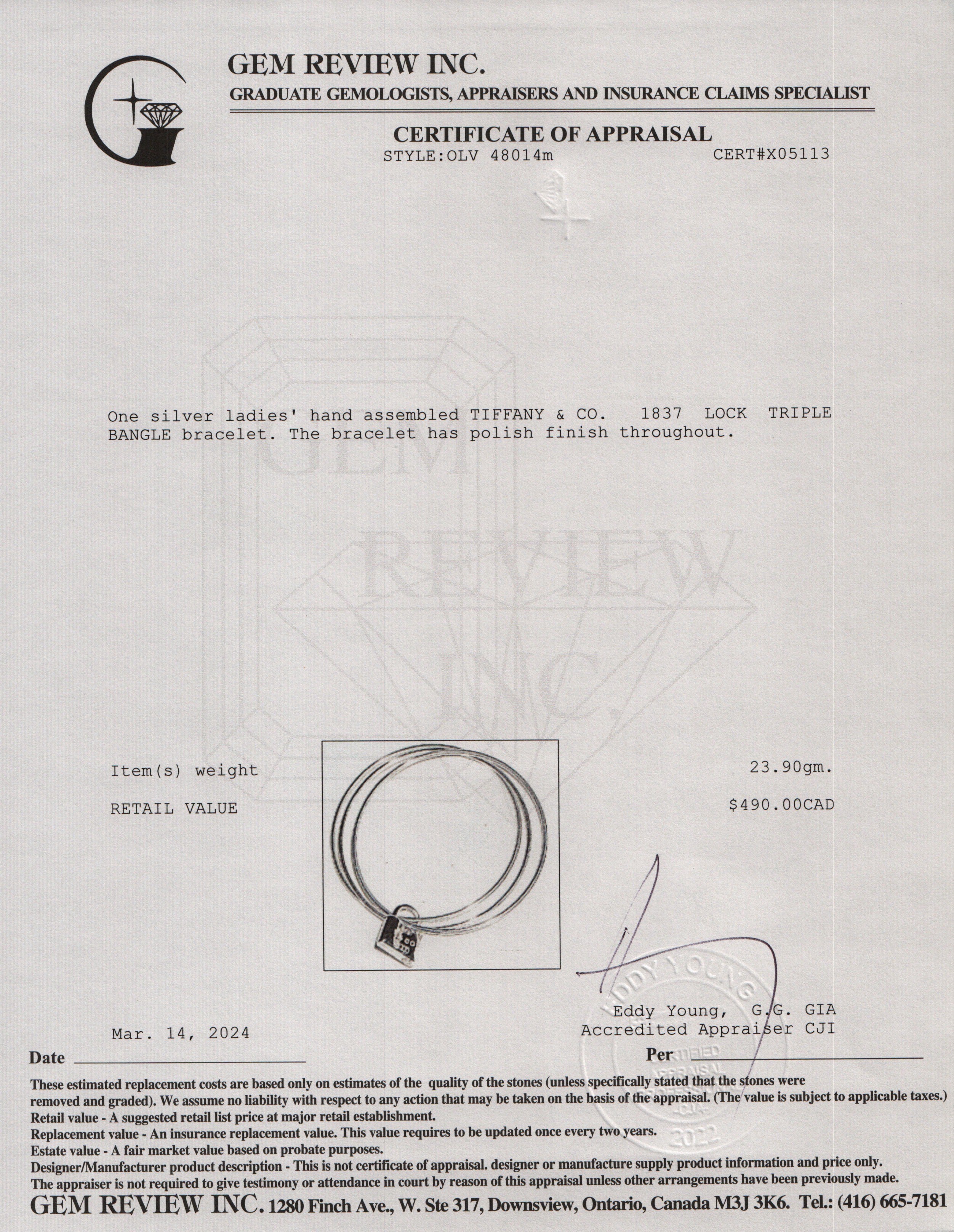 Sterling Silver 1837 Lock Triple Bangle Bracelet