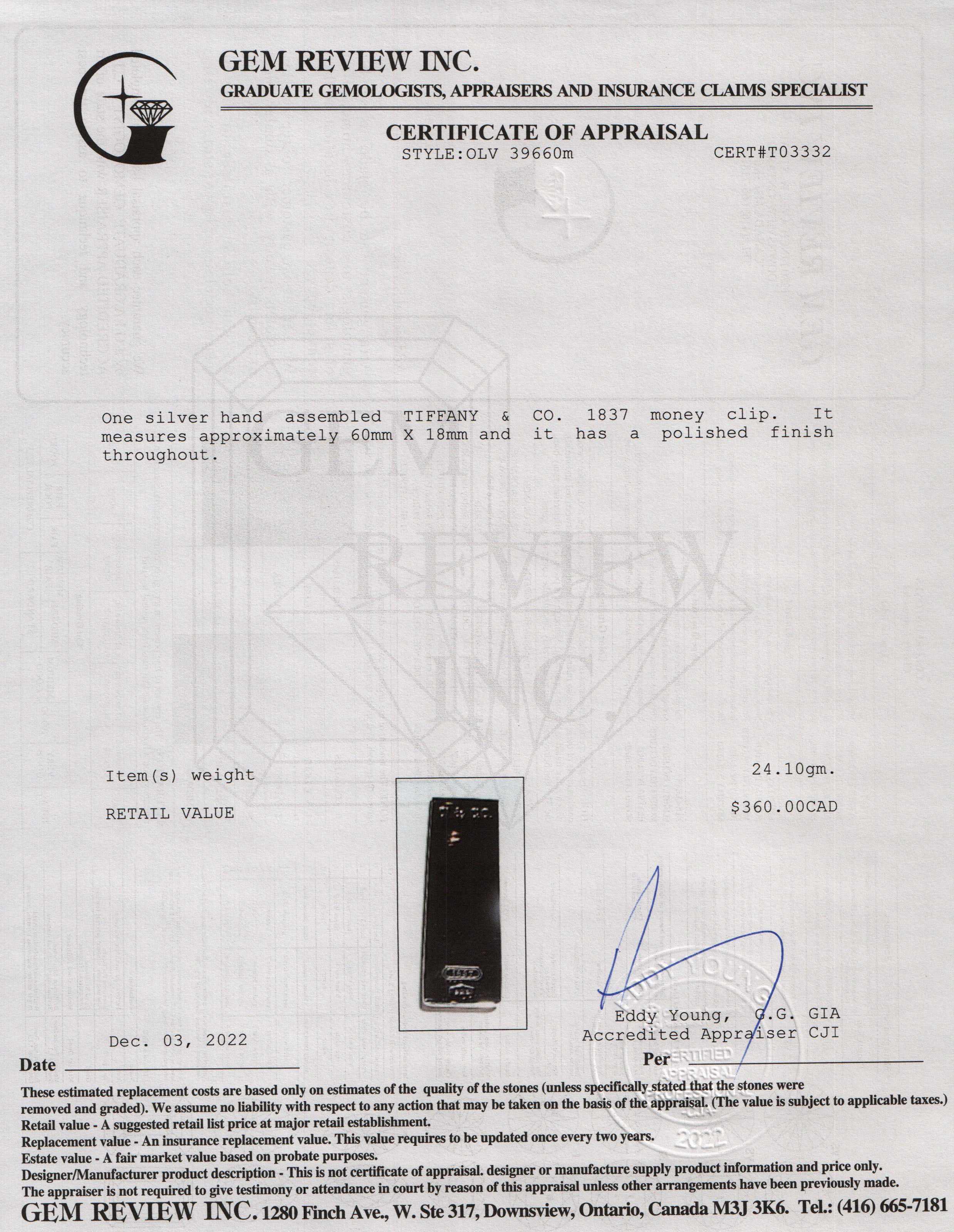 Tiffany & Co. Sterling Silver 1837 Money Clip
