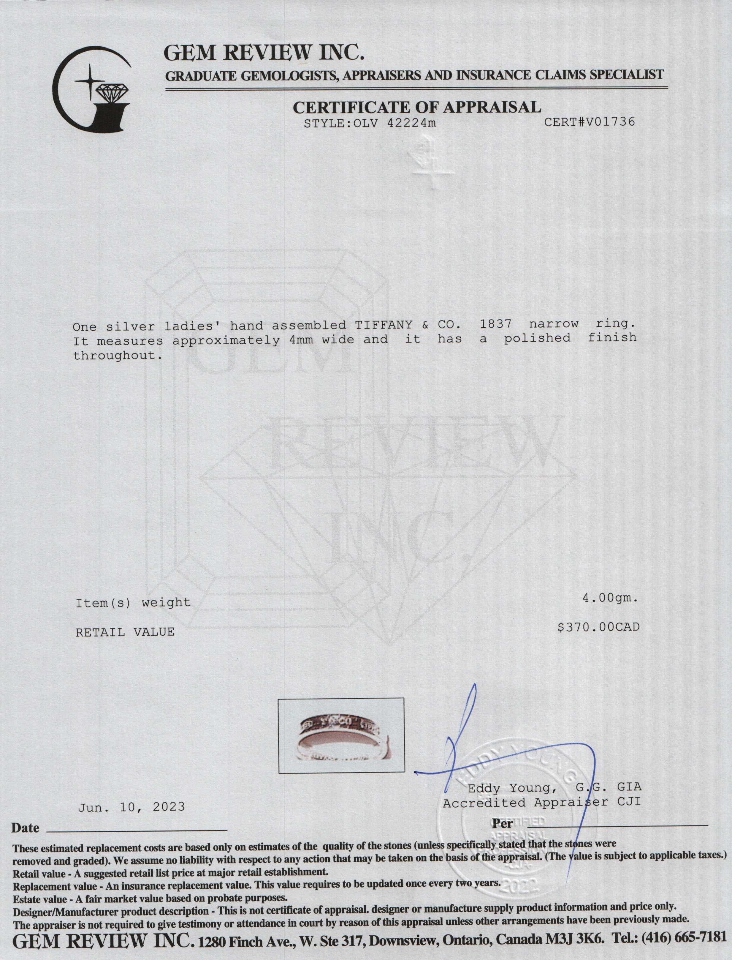 Tiffany & Co. Sterling Silver 1837 Narrow Ring