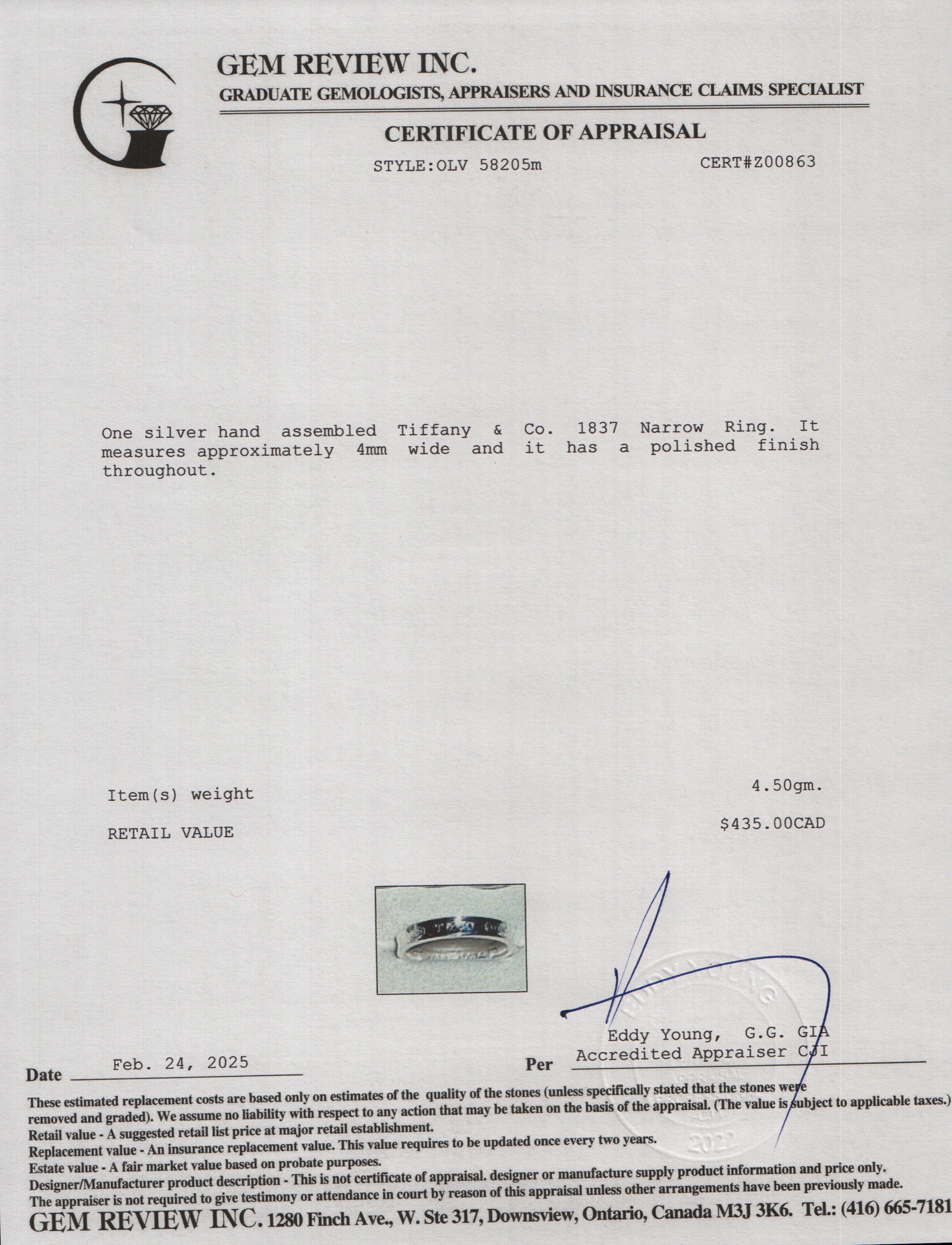 Sterling Silver 1837 Narrow Ring, Size 9.25