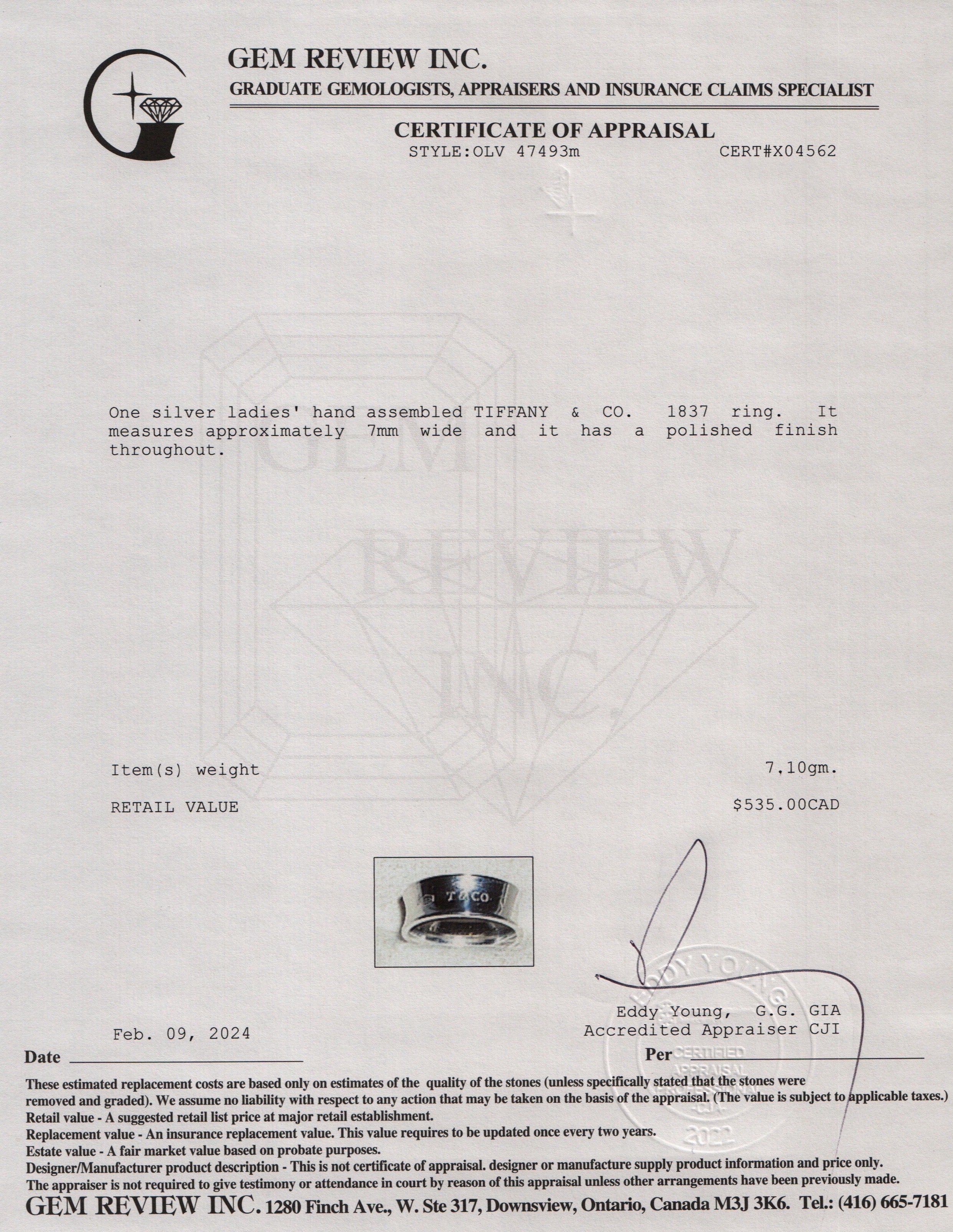 Sterling Silver 1837 Ring, Size 5.5