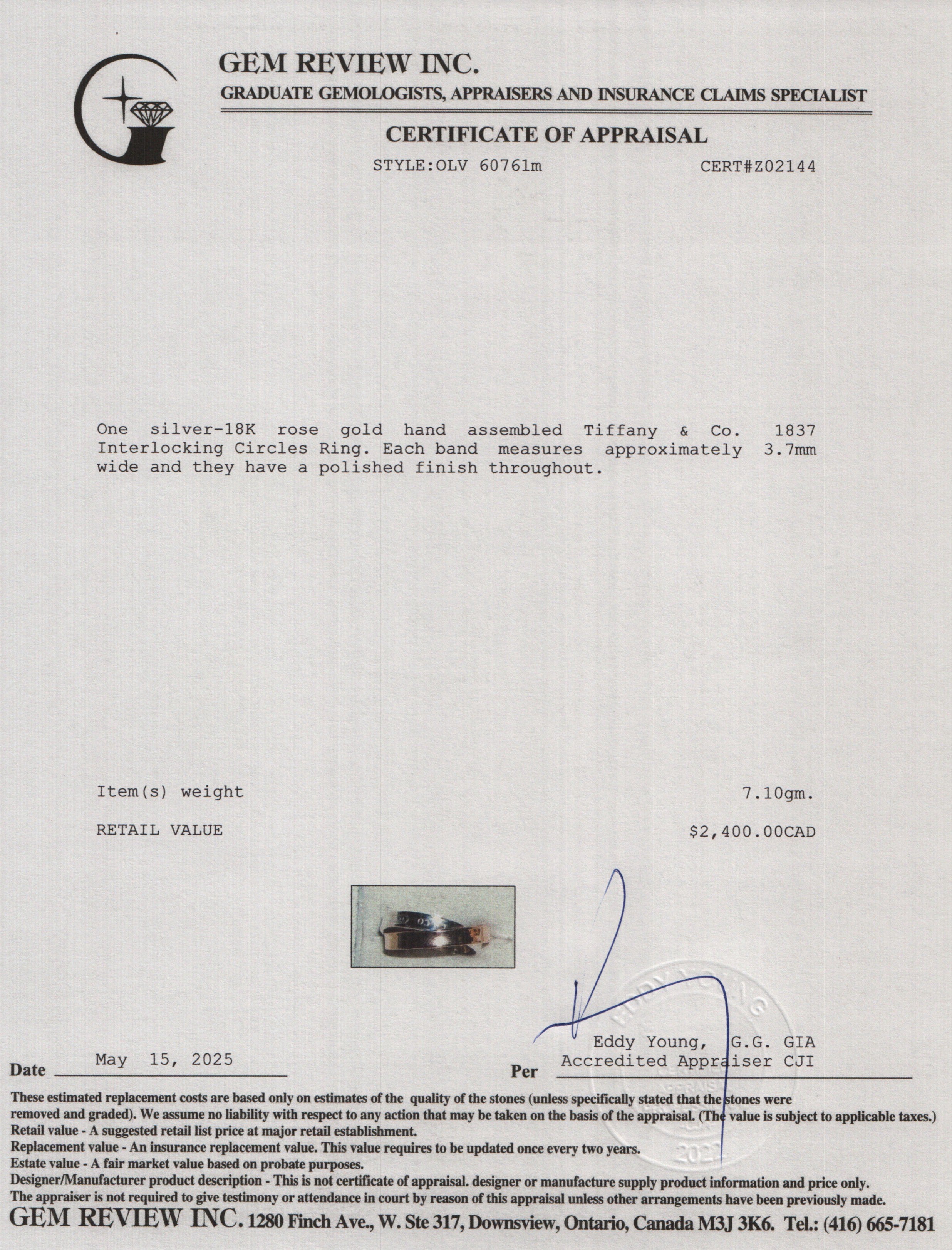 Sterling Silver & 18k Rose Gold 1837 Interlocking Circles Ring, Size 7.75