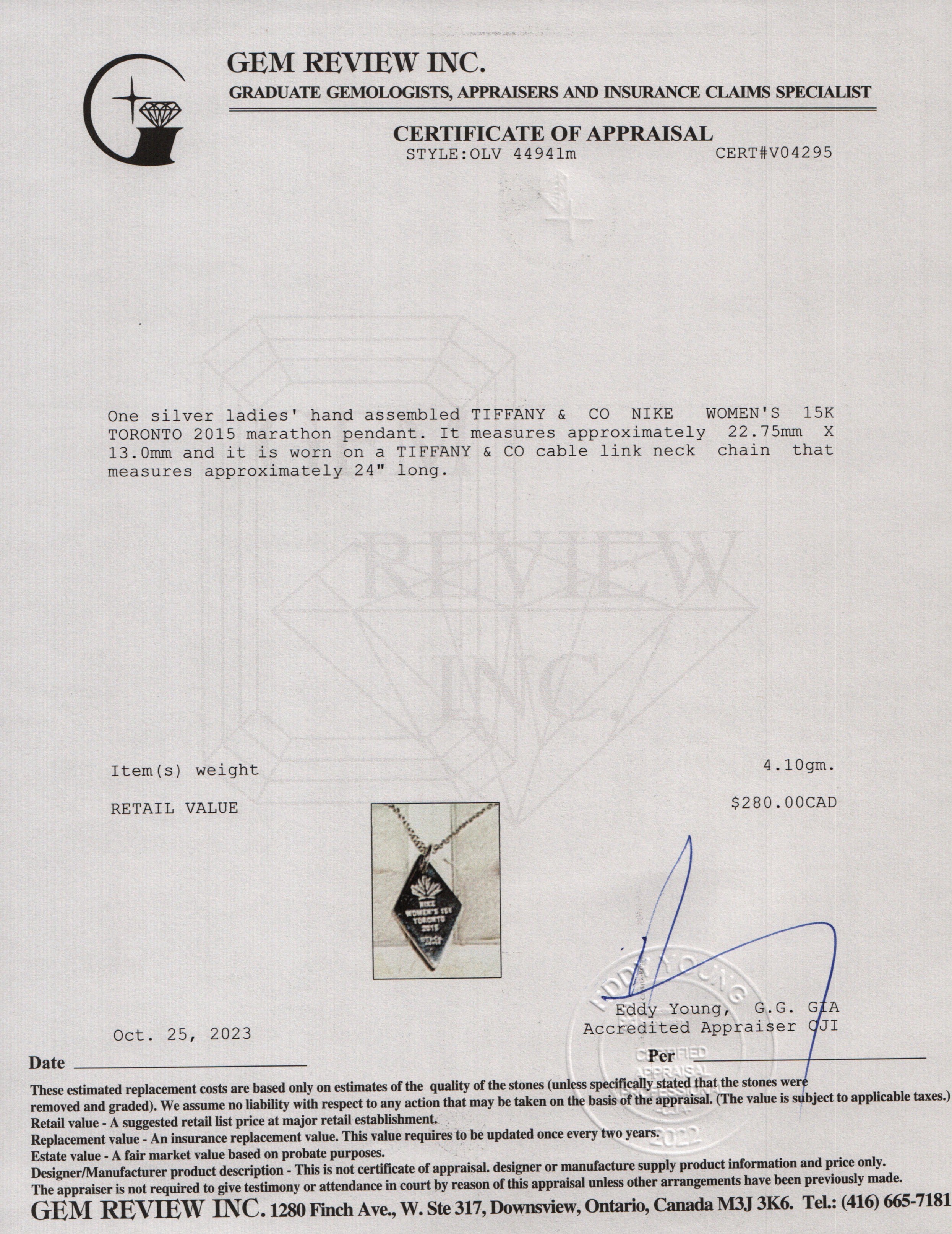 Sterling Silver 2015 Nike Women's Marathon Pendant Necklace
