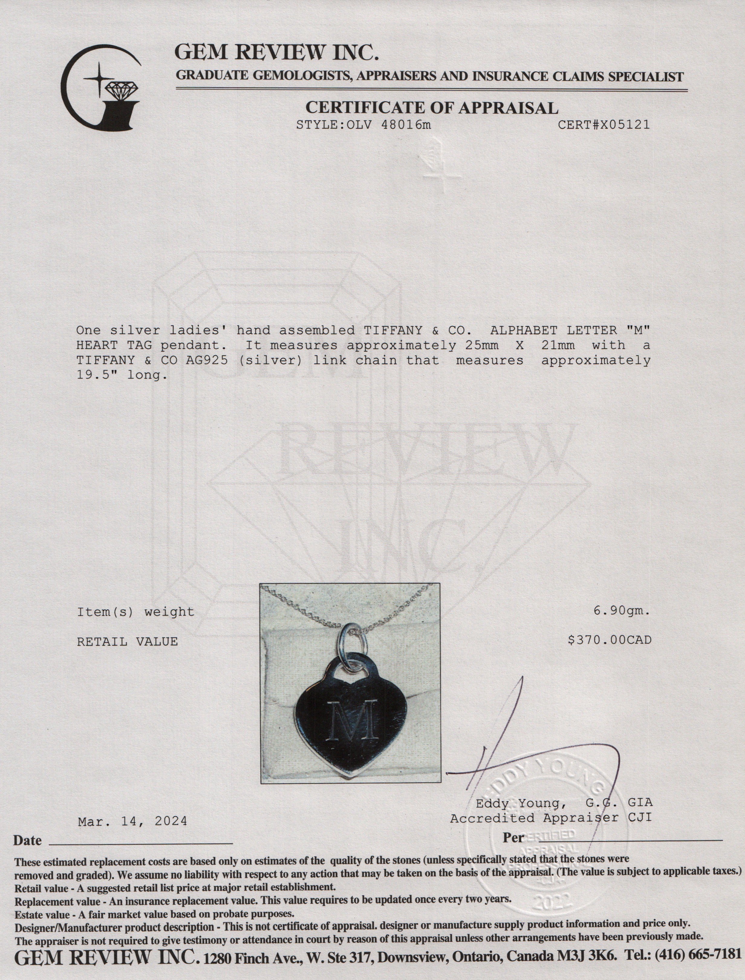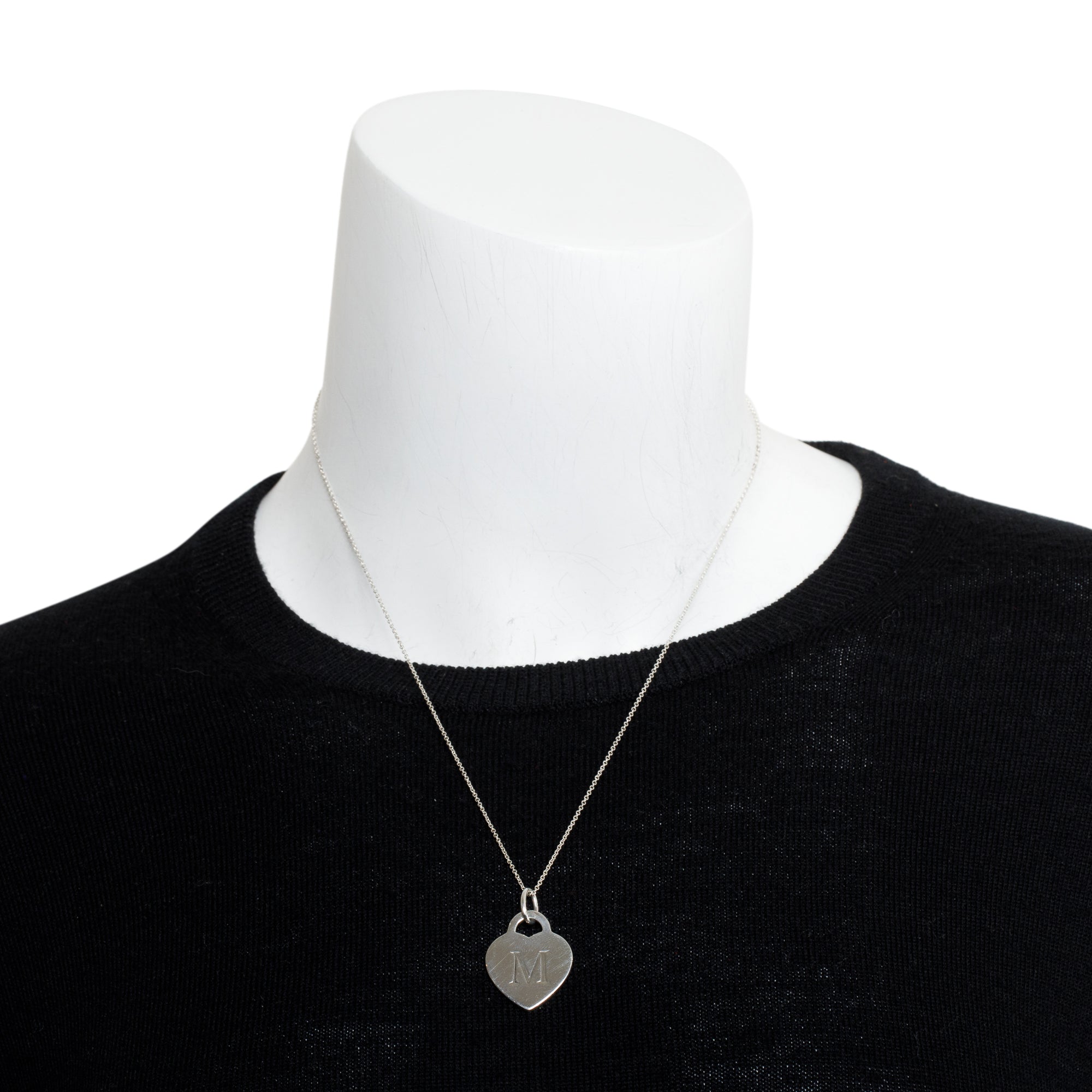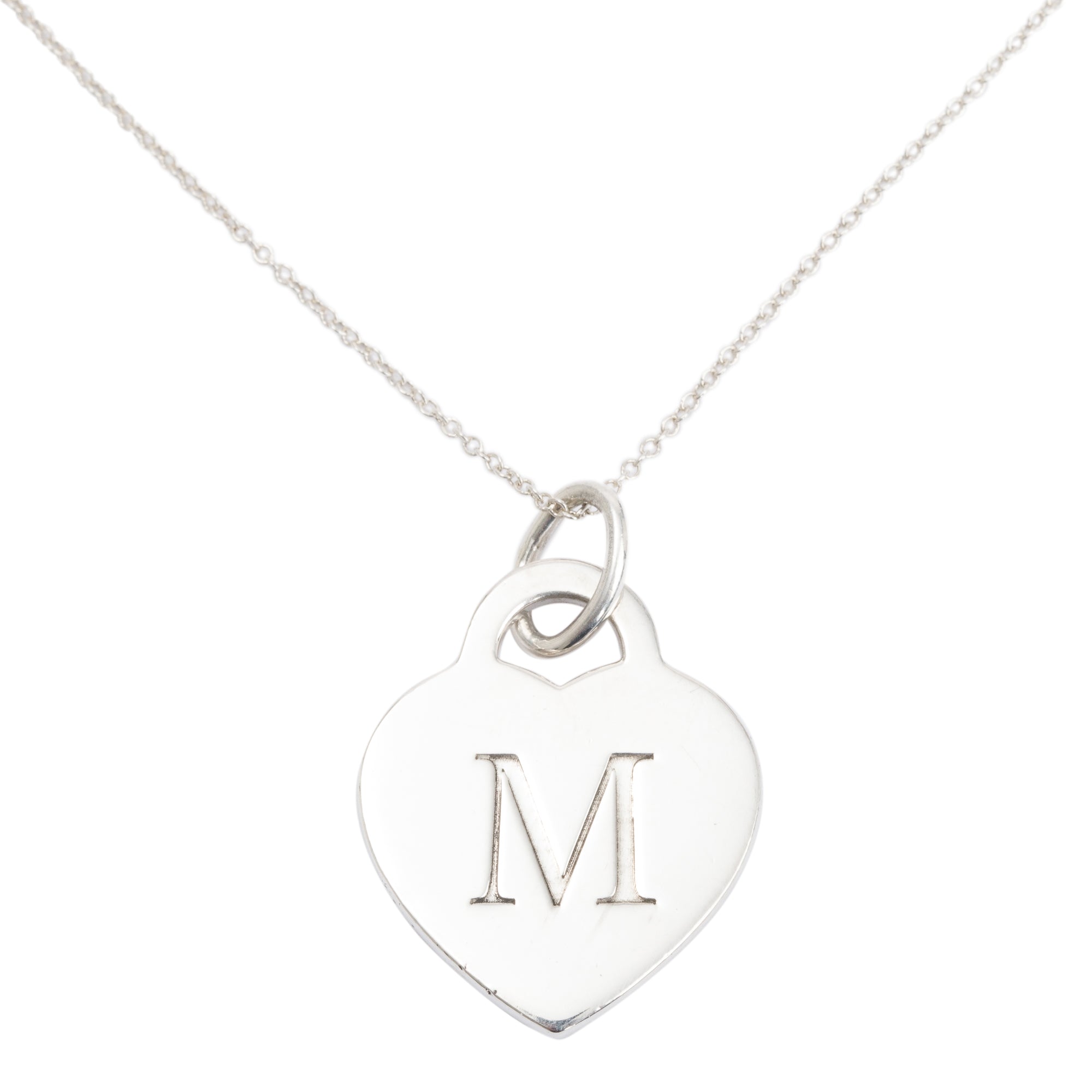 Sterling Silver Alphabet Letter 'M' Medium Heart Tag Pendant Necklace