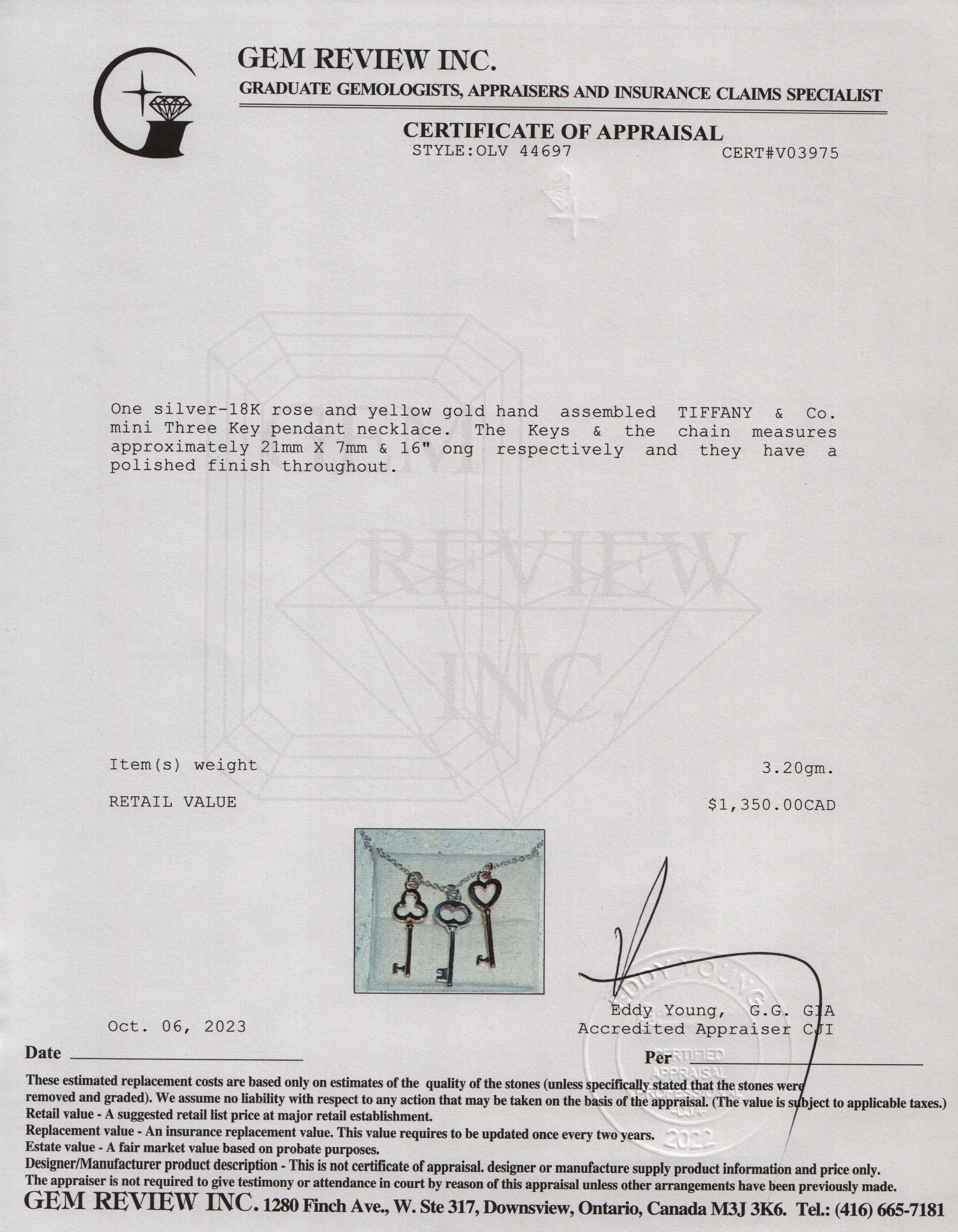 Sterling Silver and 18k Rose & Yellow Gold Mini Three-Key Pendant Necklace